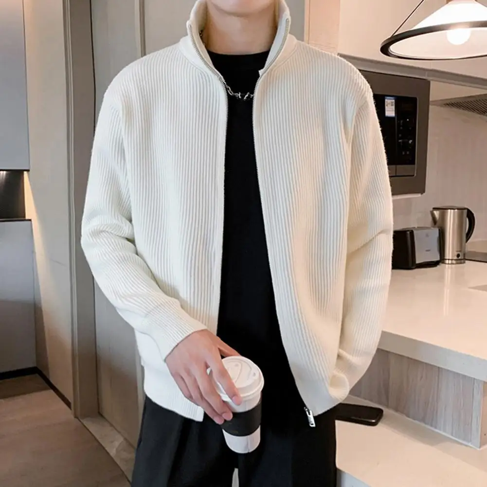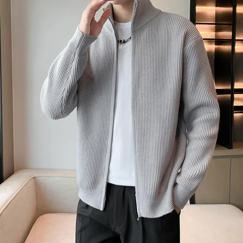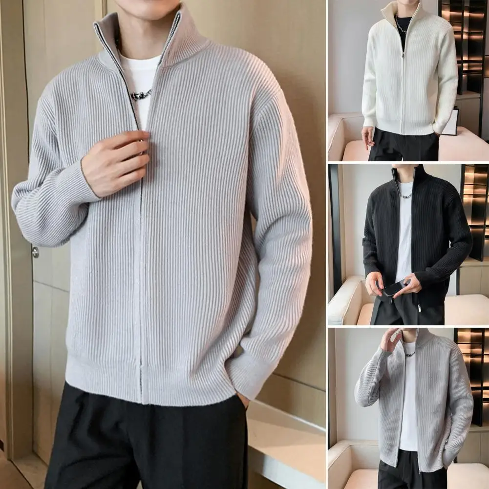 Prendas de punto para hombre, suéter de punto con cierre de cremallera elegante para hombre, abrigo con cuello alto, prendas de vestir exteriores informales para uso diario, escuela secundaria para A