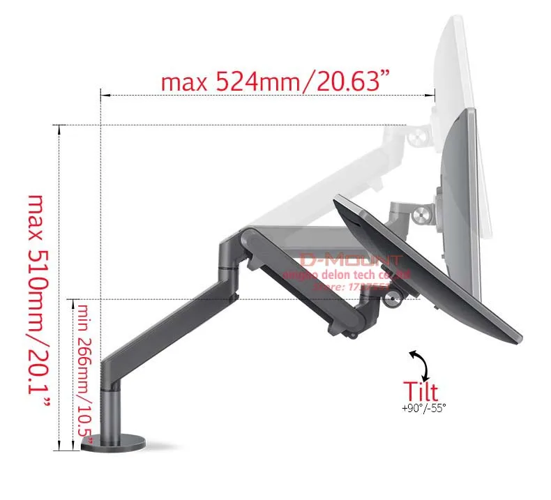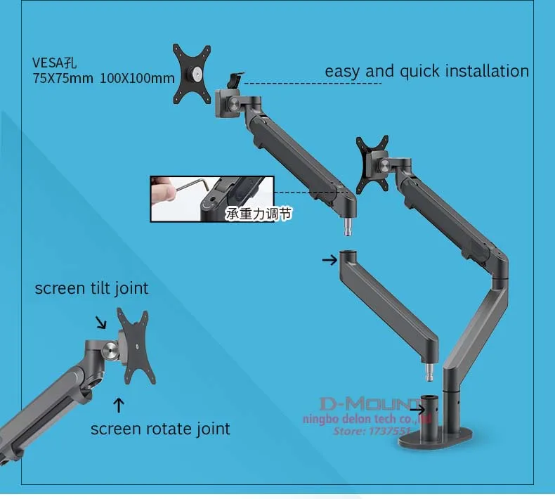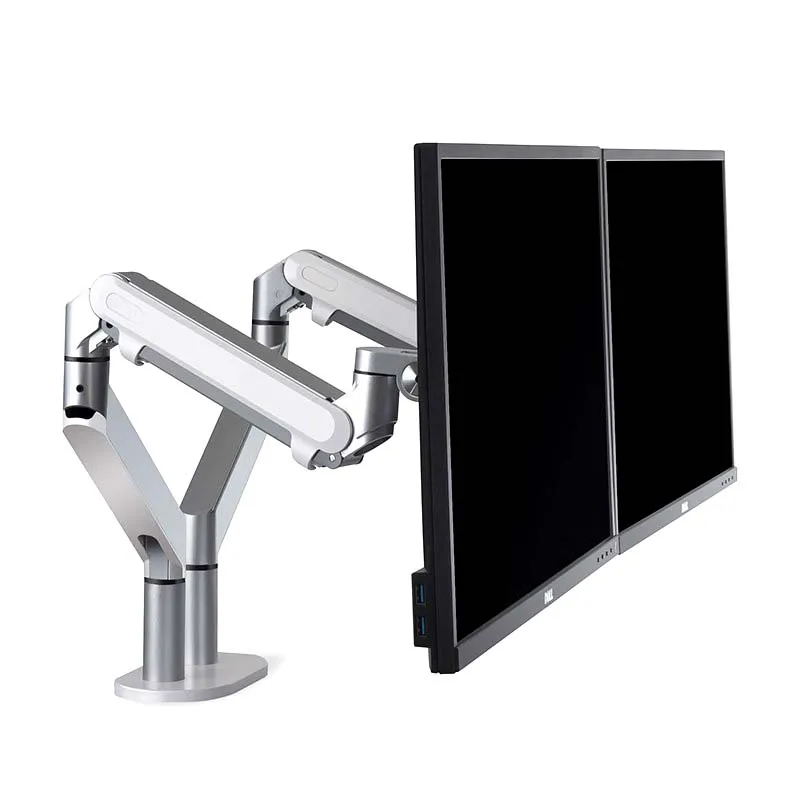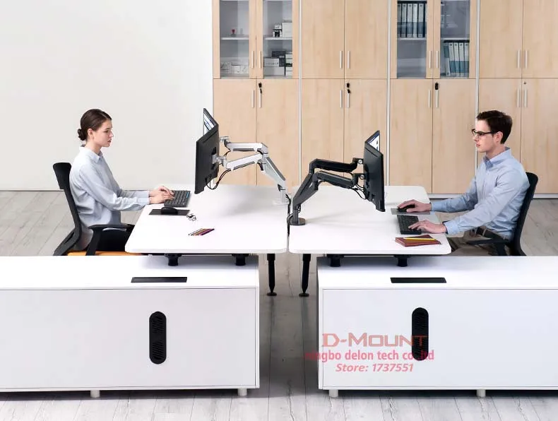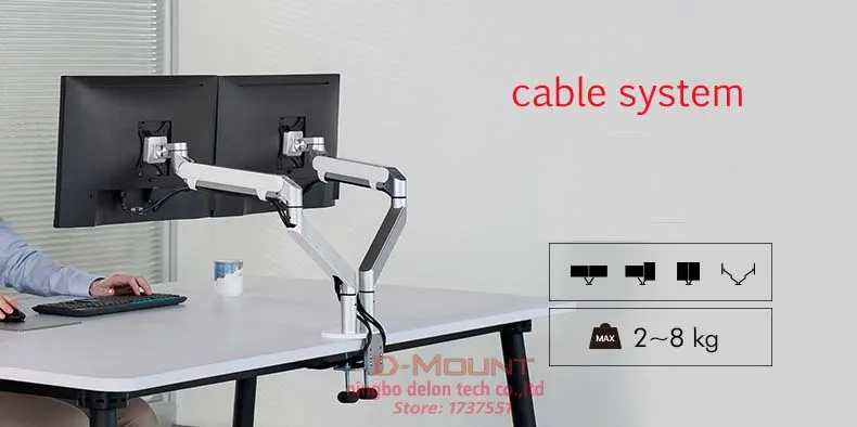Comprar Prensa de aire de 10-32 pulgadas, OZ-2, puntal de gas, inclinación, montaje de escritorio lcd, giratorio, 2-8KG, doble mesa de monitor, base de ojal de abrazadera, novedad de 2018
