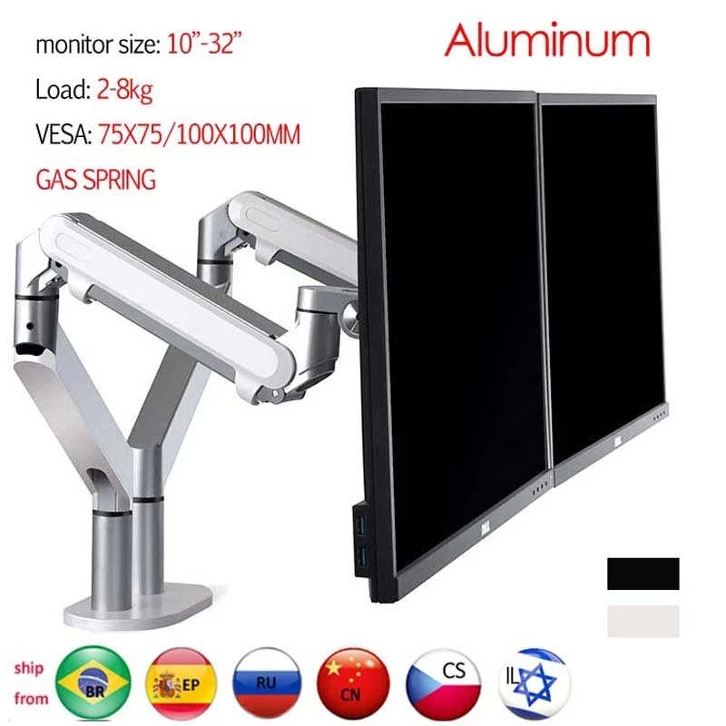 Comprar Prensa de aire de 10-32 pulgadas, OZ-2, puntal de gas, inclinación, montaje de escritorio lcd, giratorio, 2-8KG, doble mesa de monitor, base de ojal de abrazadera, novedad de 2018