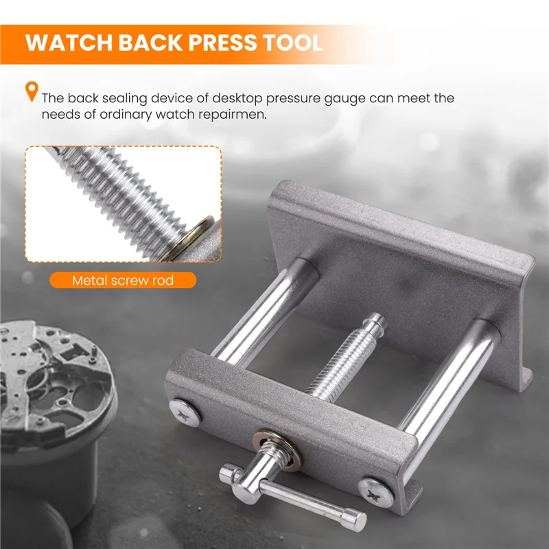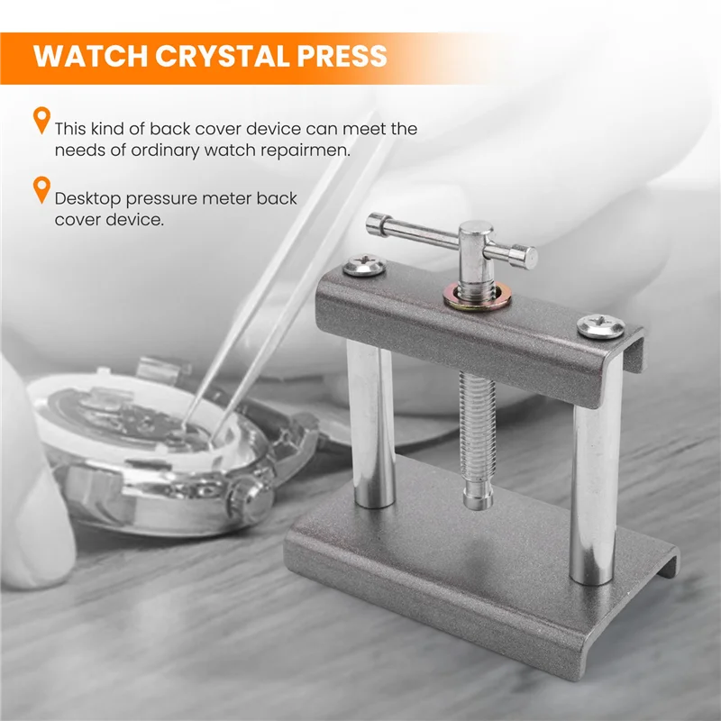 Comprar Prensa de caja de reloj de escritorio, 18 troqueles, cubierta de caja delantera y trasera, prensa de tornillo, Kit de reparación de relojeros