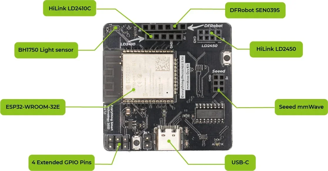 Tablero de desarrollo versátil:Compatible con más de 5 sensores mmWave diferentes, este es un parque infantil desarrollador para pruebas de sensores.
