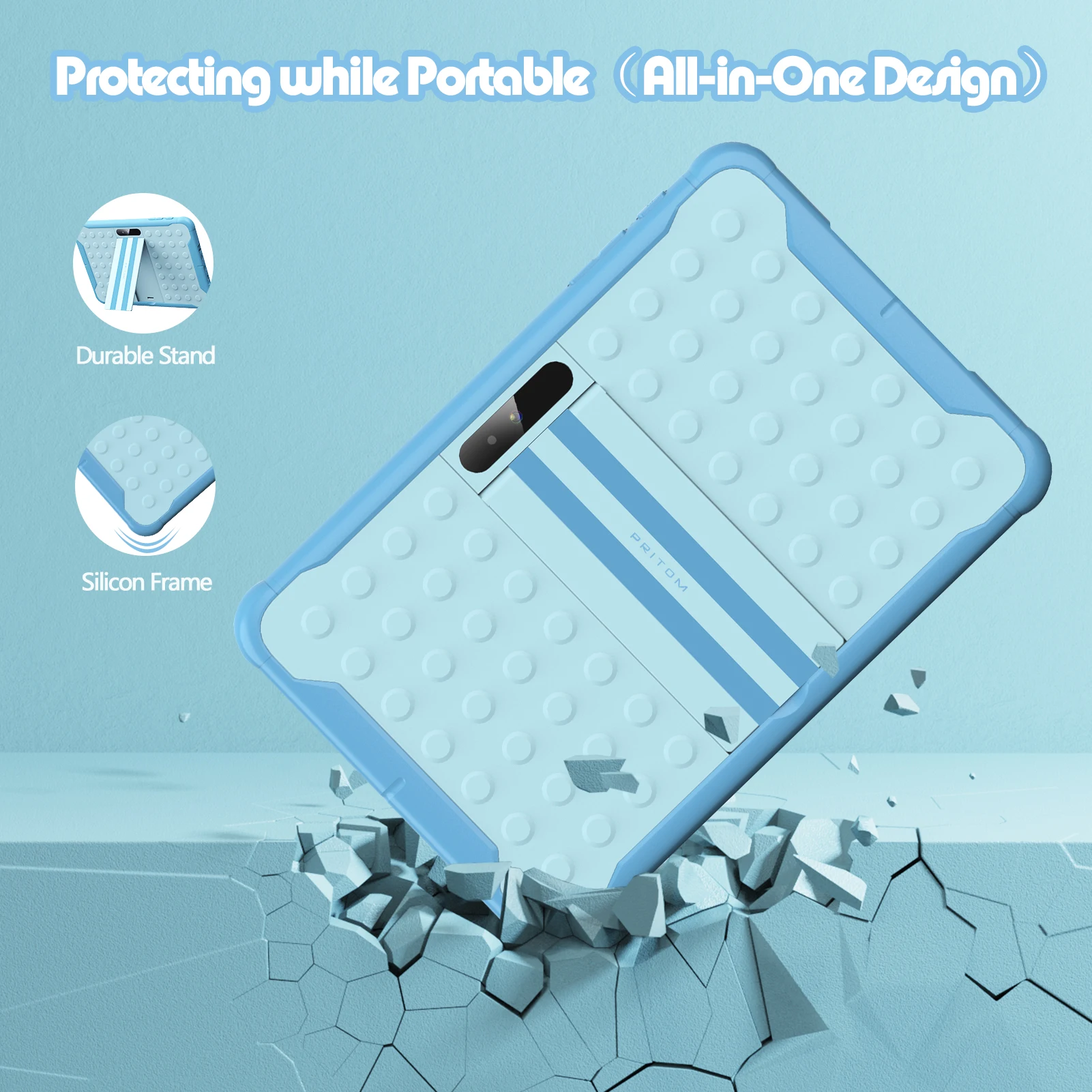 [Tableta duradera con estuche y soporte]-Funda y soporte de silicona todo en uno diseñado (de grado alimenticio) que proporciona protección y soporte mientras mantiene K10 más ligero y más pequeño, Lo que es más adecuado más niños. El caso reducirá la posibilidad de la tableta que es dañada mientras que guarda la tableta protable. Y el soporte detrás de la tableta permite a los niños ver y video chatear con manos libres.