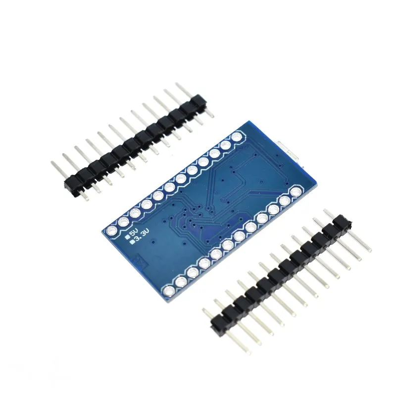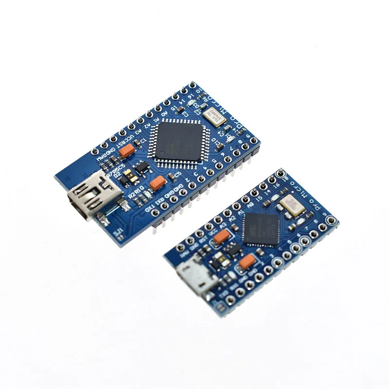 Pro Micro es similar al Pro Mini excepto con un ATmega32U4 integrado.El transceptor USB dentro del 32U4 nos permite agregar conectividad USB a bordo y hacerlo con una voluminosa interfaz USB externa.