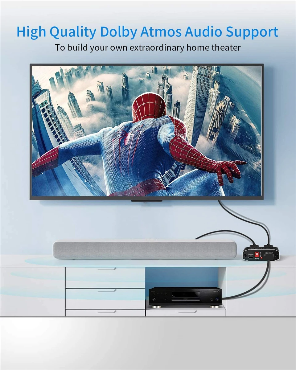 4. Funciona con todos los dispositivos conectados con el puerto HDMI, como por ejemplo, ordenadores portátiles, consolas de juegos, Xbox 360, Xbox One, PS3, PS4, PS4 Pro, Reproductor de DVD Blu-Ray, receptor de satélite, Route Roku, proyectores, receptores de TV, HD-Ready, televisores Full HD, Apple TV, Samsung TV, monitores, etc.