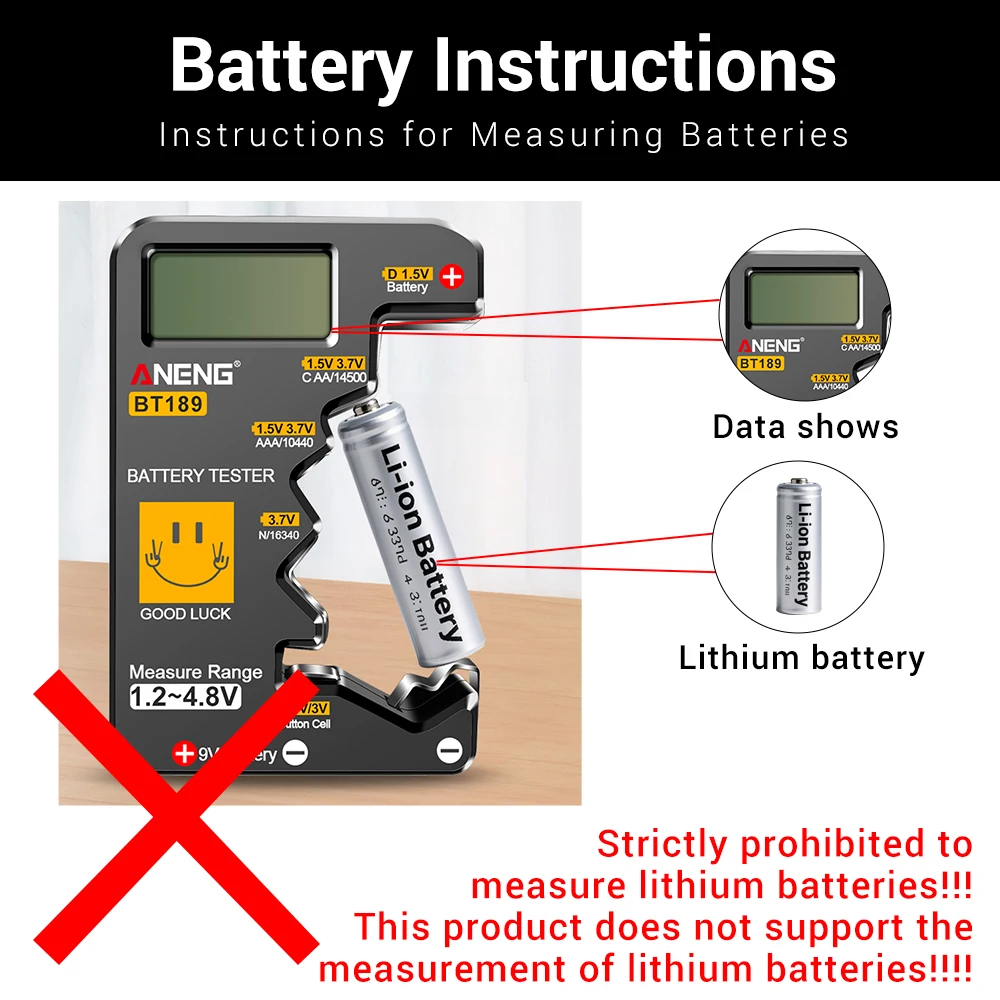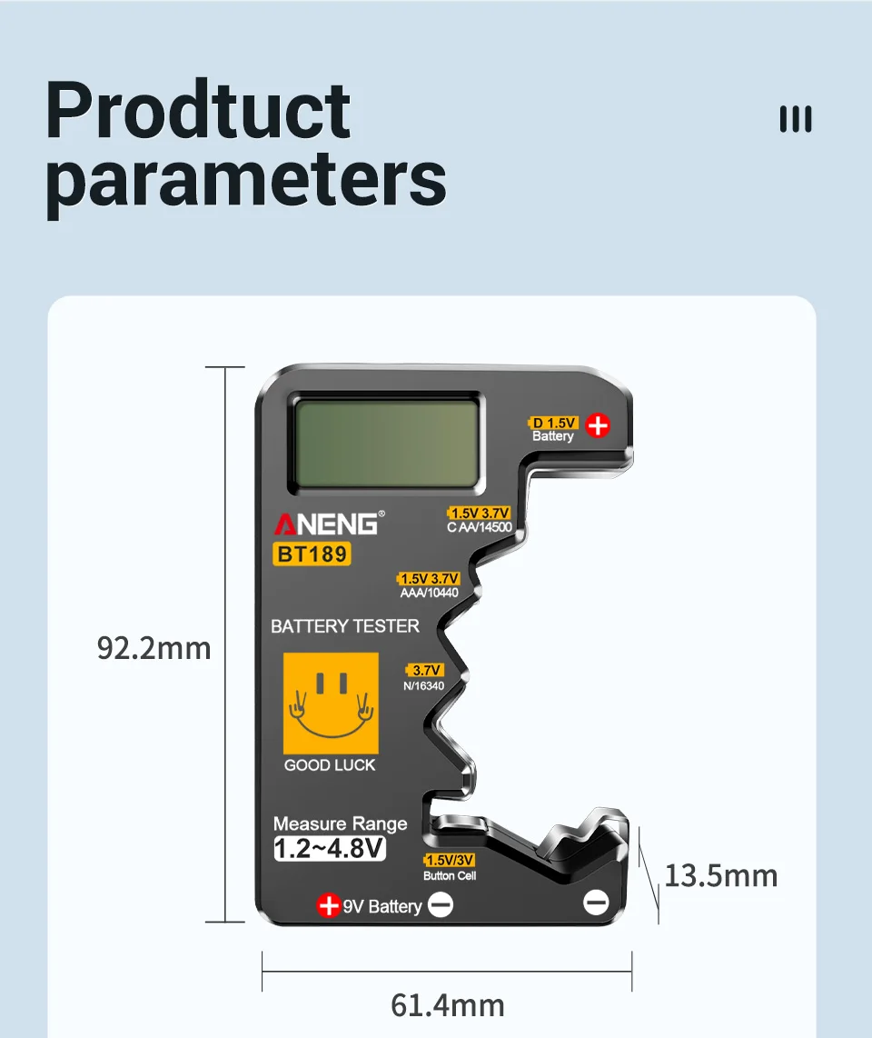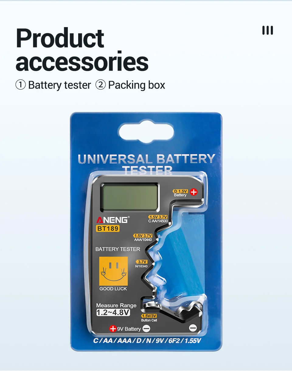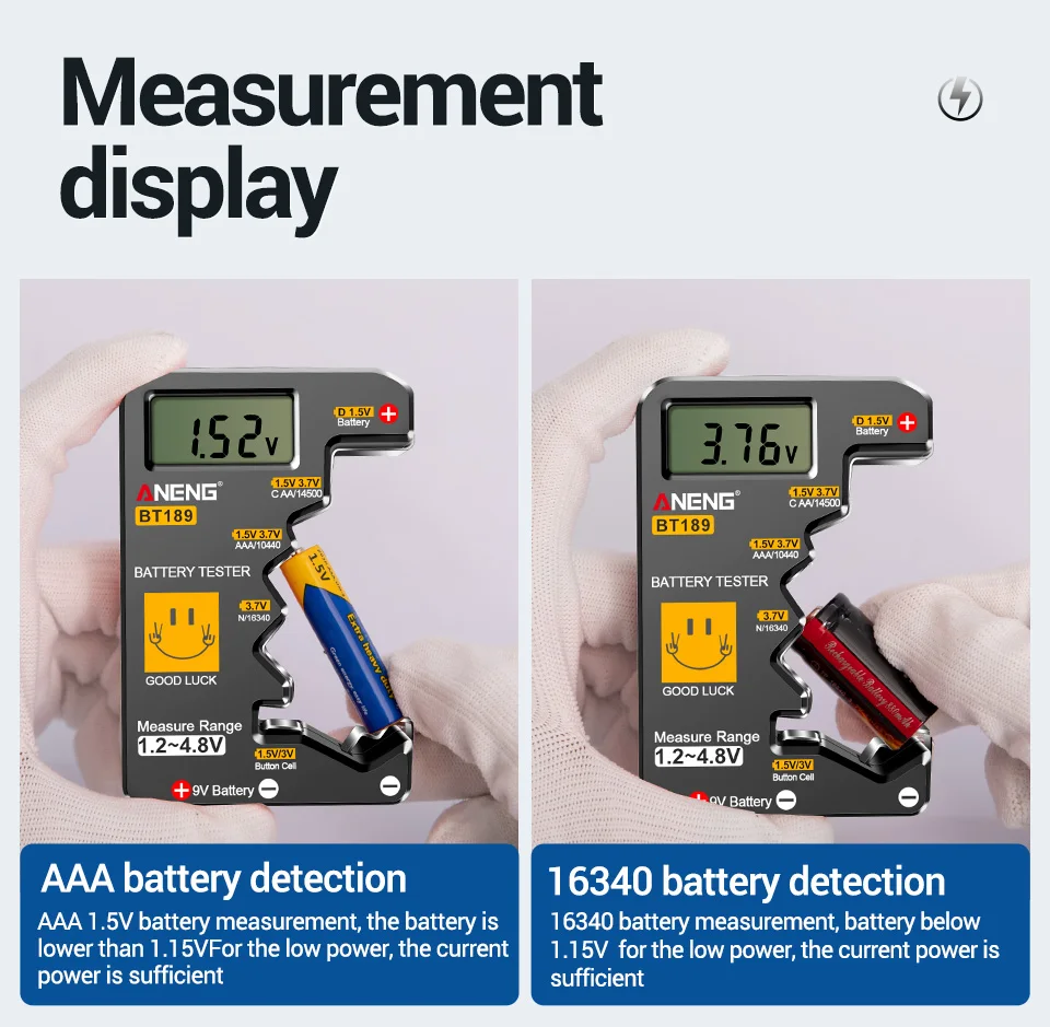 🔋 ¡Nunca más desperdicie una batería!El ANENG BT189 le ofrece lecturas digitales instantáneas para más de 10 tipos de baterías, ¡sin adivinar!