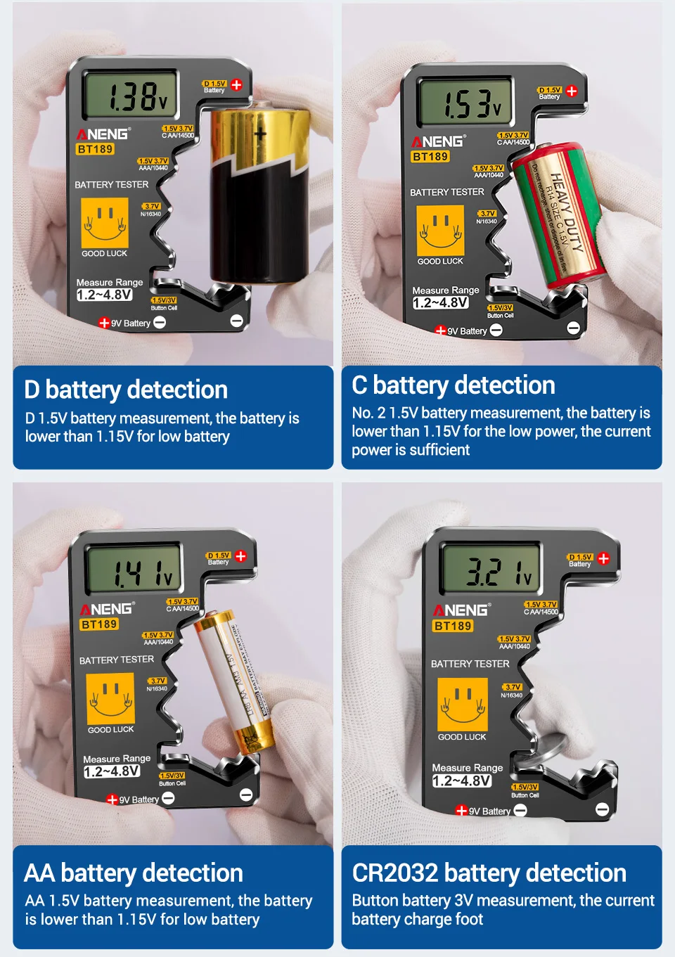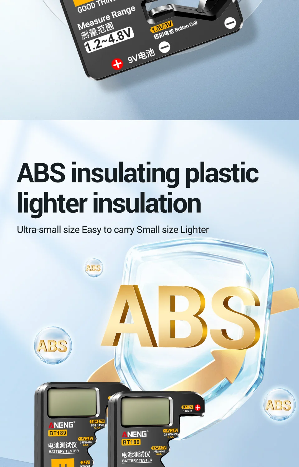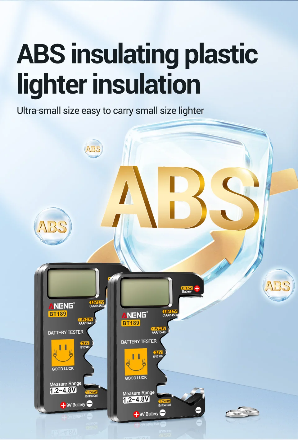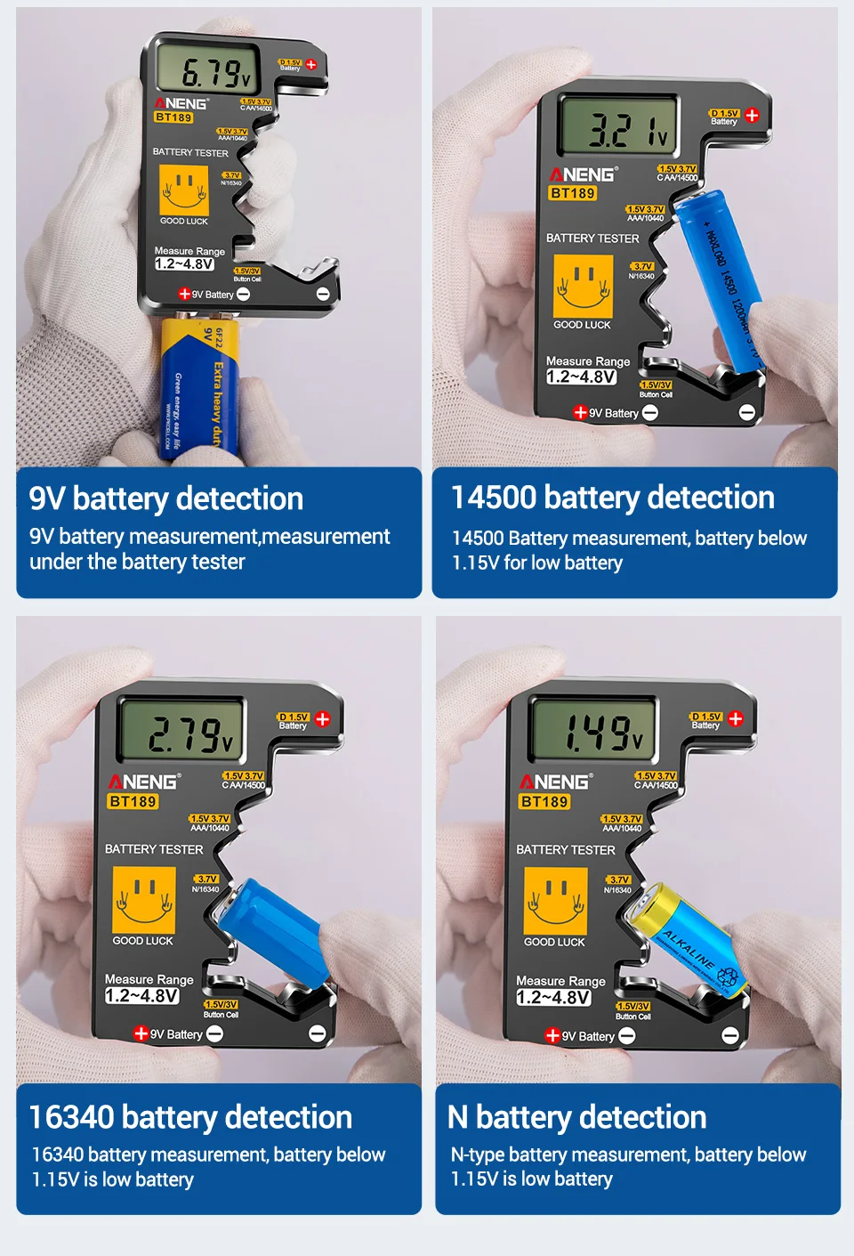 🔋 ¡Nunca más desperdicie una batería!El ANENG BT189 le ofrece lecturas digitales instantáneas para más de 10 tipos de baterías, ¡sin adivinar!