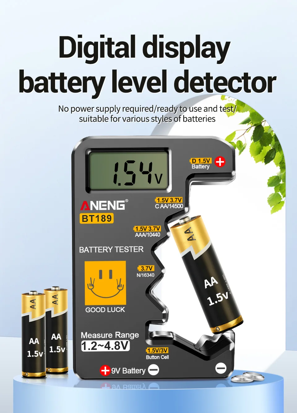 Probador de batería, comprobador de batería digital, probador AA AAA, no requiere batería, ANENG BT189 Pro