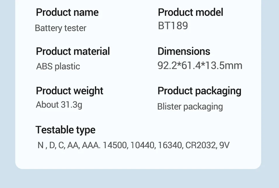 sin probador de batería, ANENG BT189, verificación de batería de 1 segundo, probador de batería de 9 V, probador de batería 18650, probador de batería 16340, herramienta de batería de bolsillo, pantalla LCD de batería, 1.Probador de 5V-9V, verificación de batería de bricolaje, herramienta de batería doméstica, probador de llavero, certificado CE, detector de nivel de batería, ahorrador de desperdicio de batería, probador de batería barato