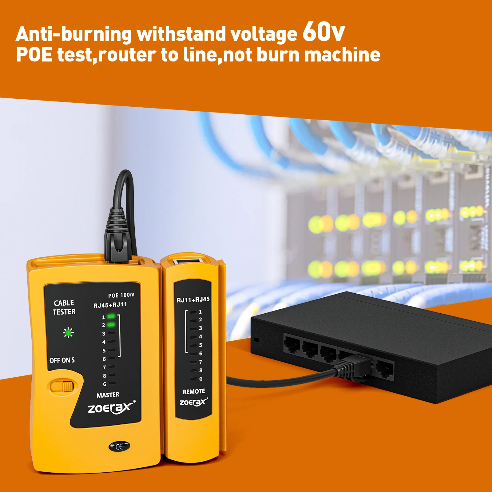 Probador de cables Ethernet de red ZoeRax para LAN RJ45 Cat5 Cat5e Cat6 Cat6a Cat7 UTP/cable blindado y RJ11 RJ12