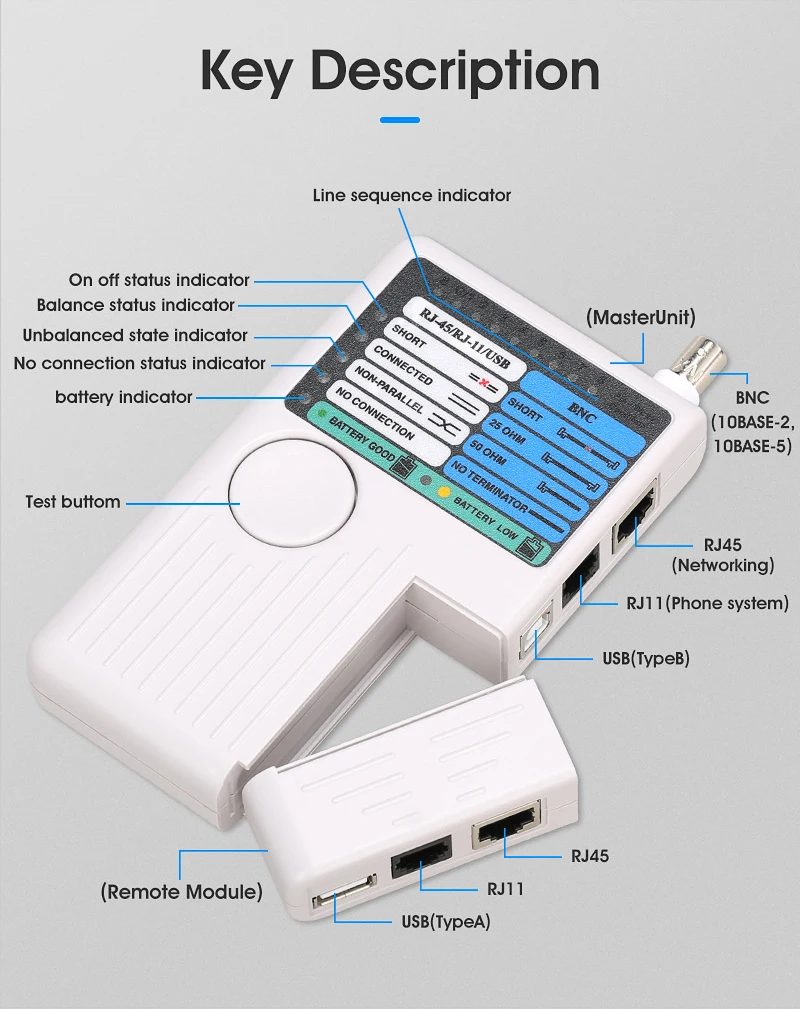 Probador remoto de cables de red LAN BNC USB RJ11 RJ45 para UTP STP LAN Cable Tracker Detector herramienta de alta calidad