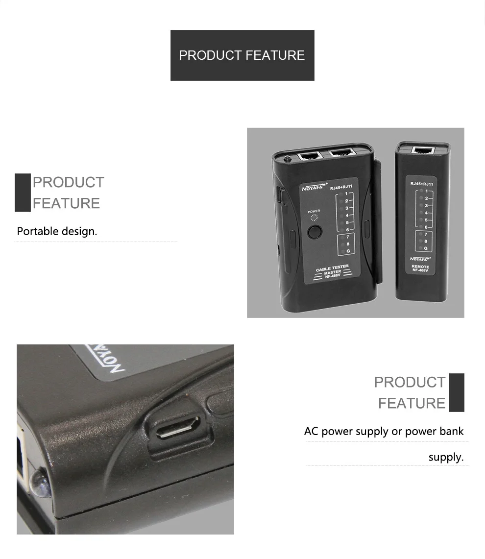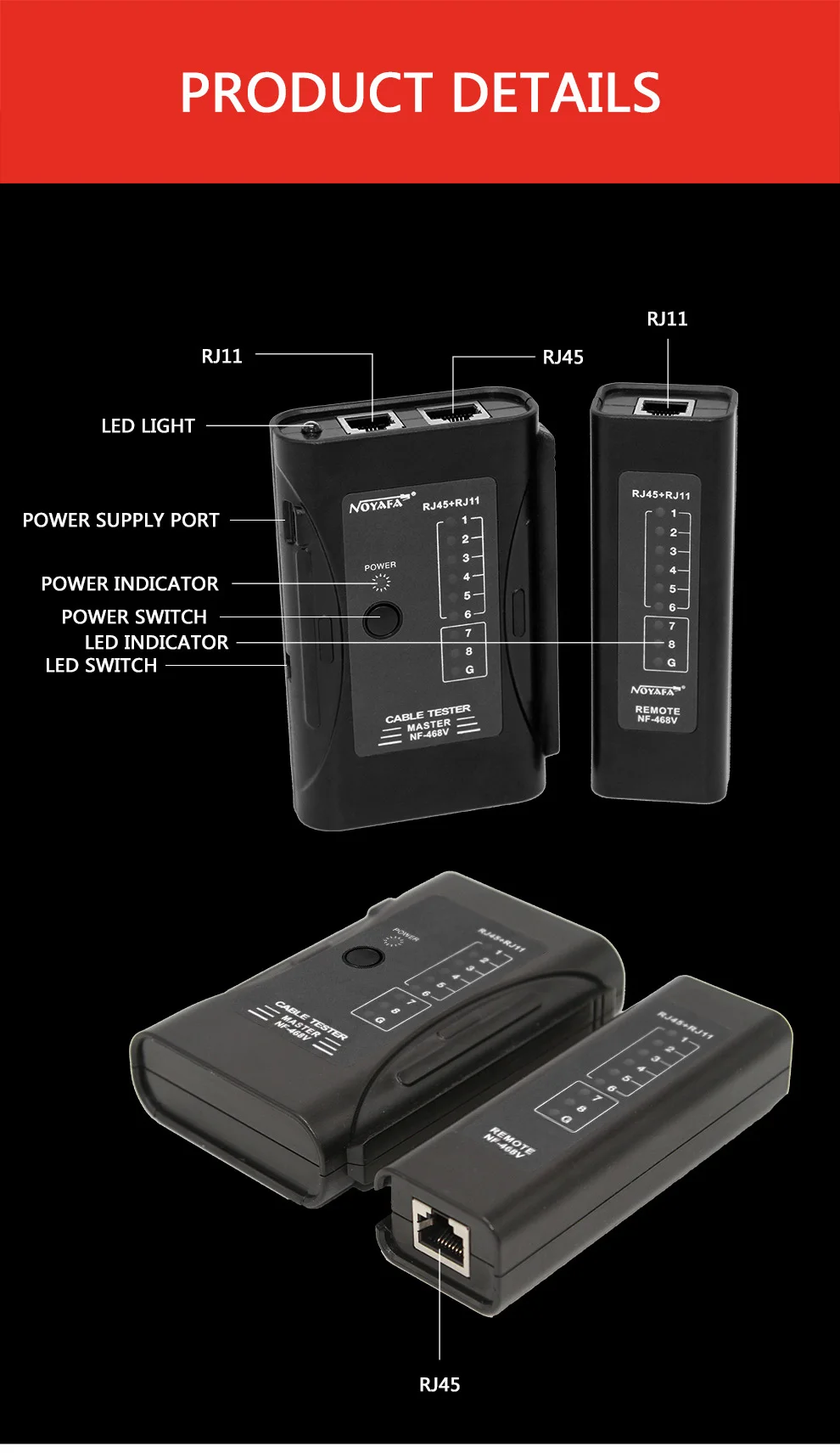 Comprar Probador de Cable de red NOYAFA NF-468V/468, prueba de continuidad, verificación de Cable RJ11 + RJ45, detección rápida, pruebas automáticas multifuncionales