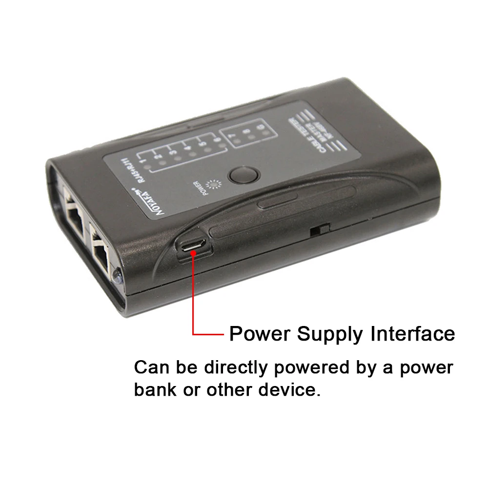 1. los cables correspondientes de doble torsión Pruebe 1, 2, 3, 4, 5, 6, 7, 8 y tierra. Capaz de juzgar la conexión incorrecta, el cortocircuito y el circuito abierto. Probador de cables para Rj11, Rj12, Rj45, CAT 5E, CAT 54.It puede aclarar fácilmente el cable, la continuidad, abrir y short5.Verificación de la continuidad del cable, par de cables abiertos, cortos y cruzados hasta 1000Ft con kit remoto