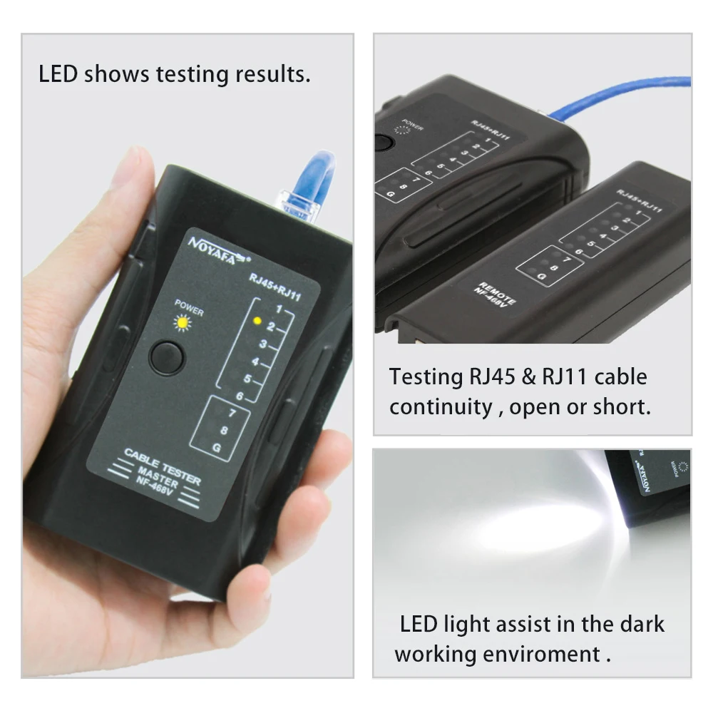 Comprar Probador de Cable de red NOYAFA NF-468V/468, prueba de continuidad, verificación de Cable RJ11 + RJ45, detección rápida, pruebas automáticas multifuncionales