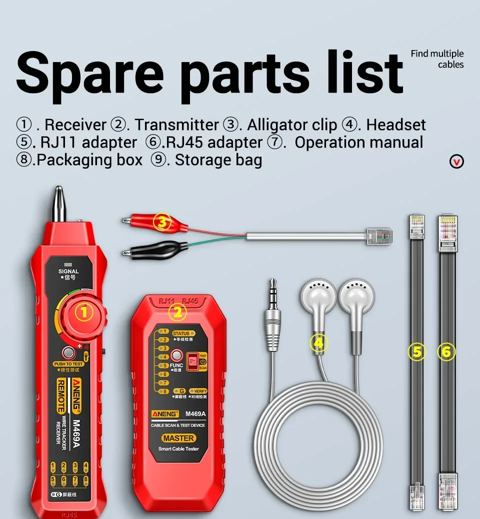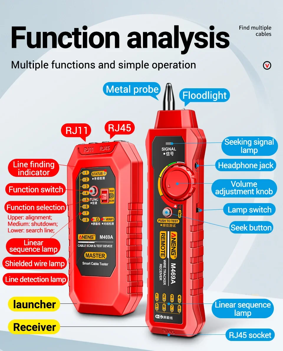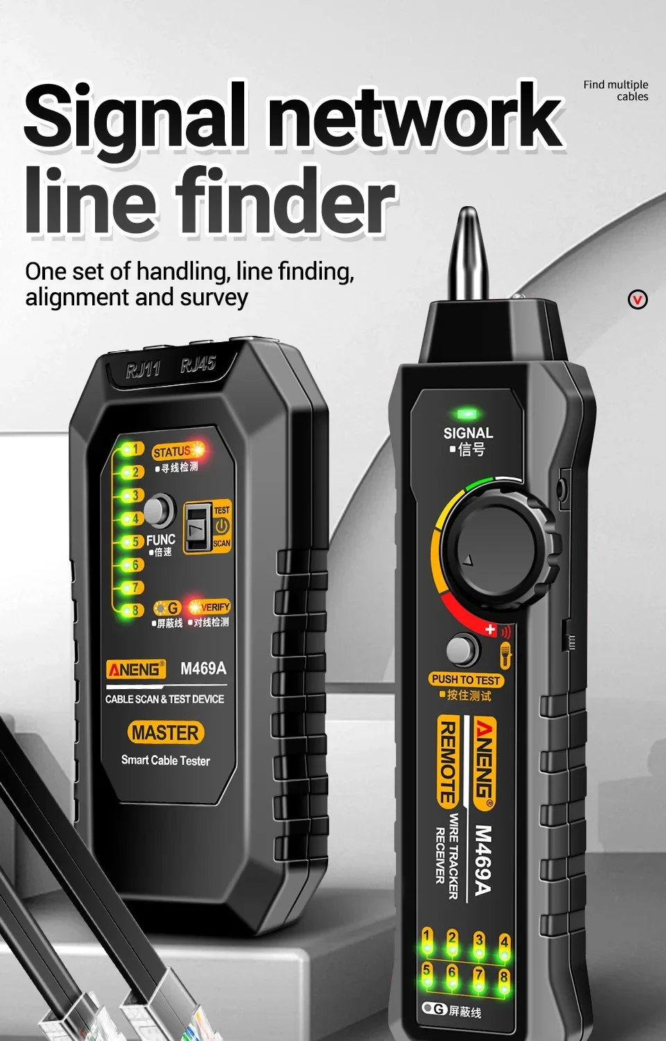 ANENG M469AProbador de Cable de red inteligente Digital RJ45 RJ11 LAN, probador de Cable, rastreador de cables, rastreador de tóner, Detector de tóner, herramientas de prueba de línea