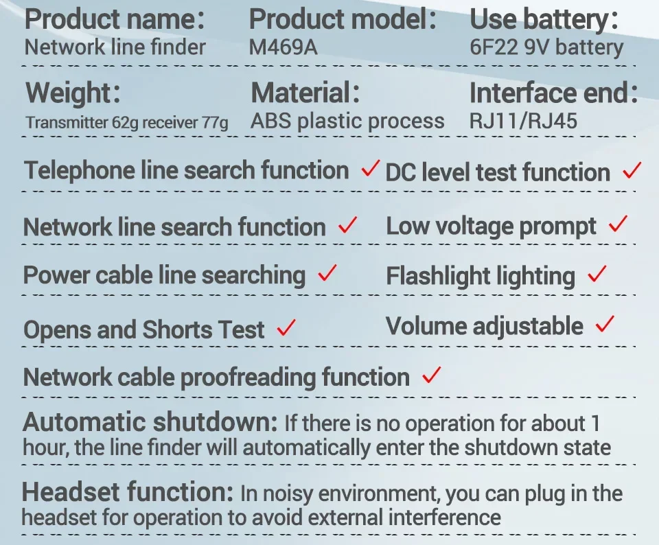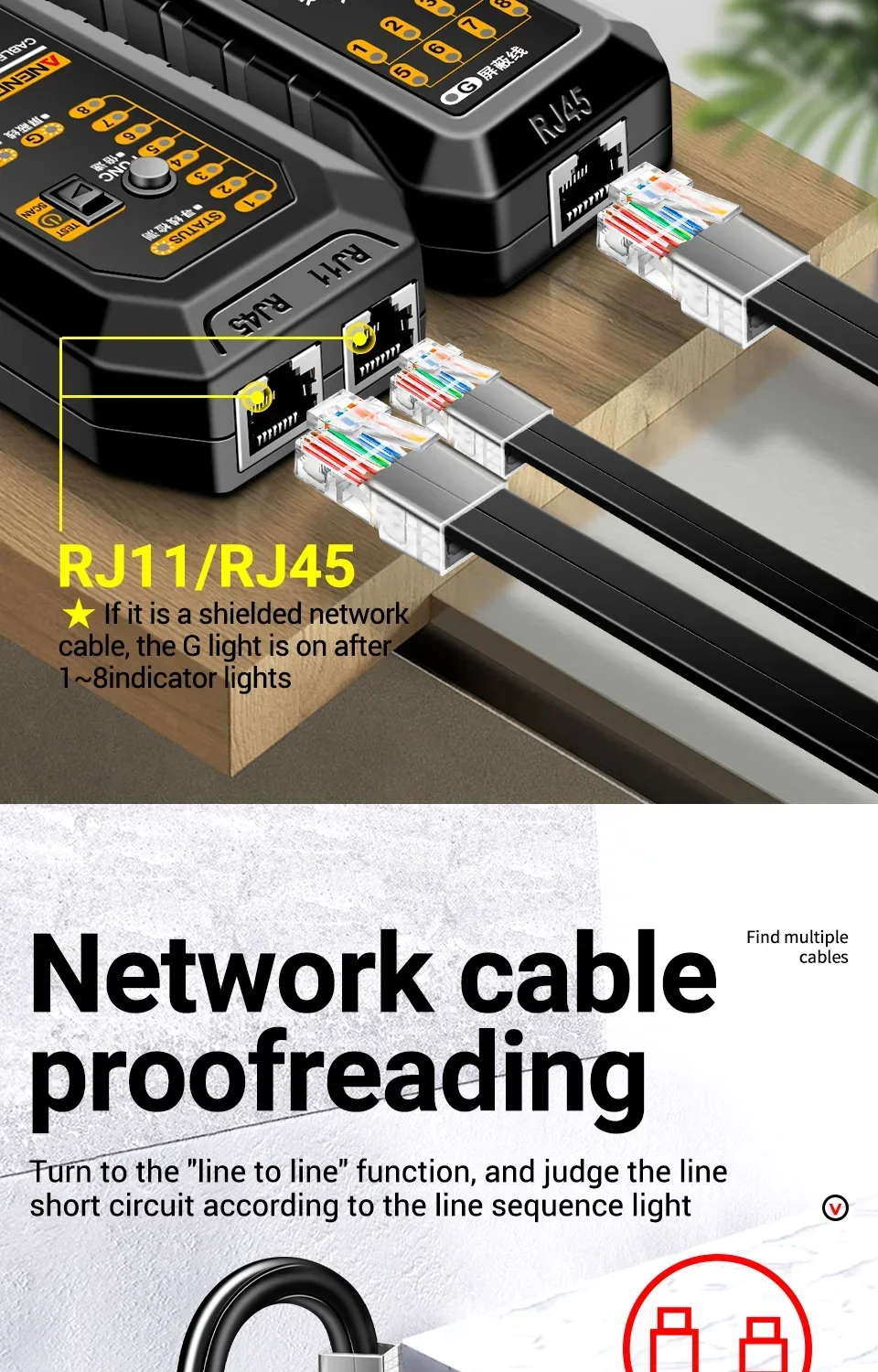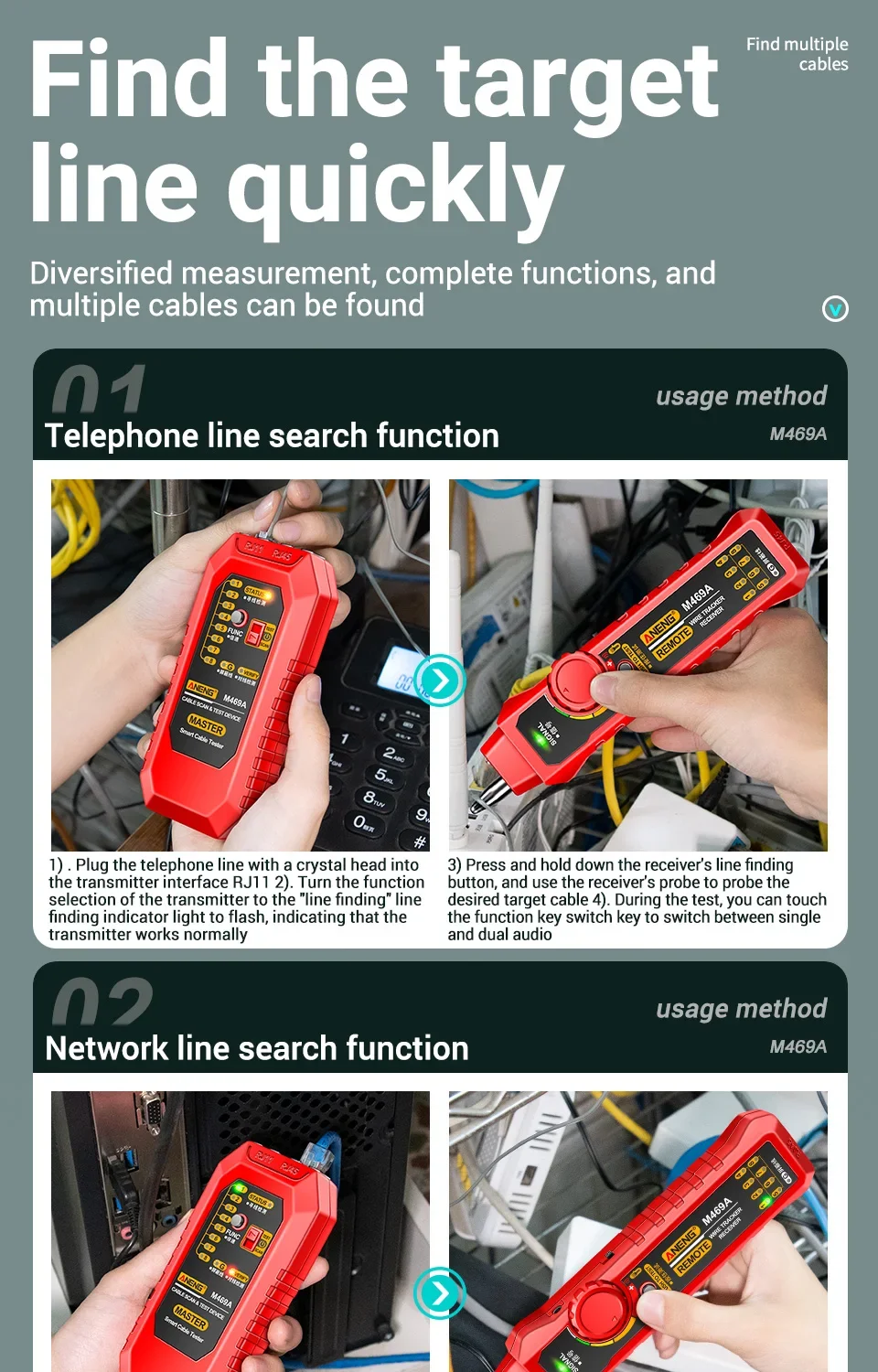 ANENG M469AProbador de Cable de red inteligente Digital RJ45 RJ11 LAN, probador de Cable, rastreador de cables, rastreador de tóner, Detector de tóner, herramientas de prueba de línea
