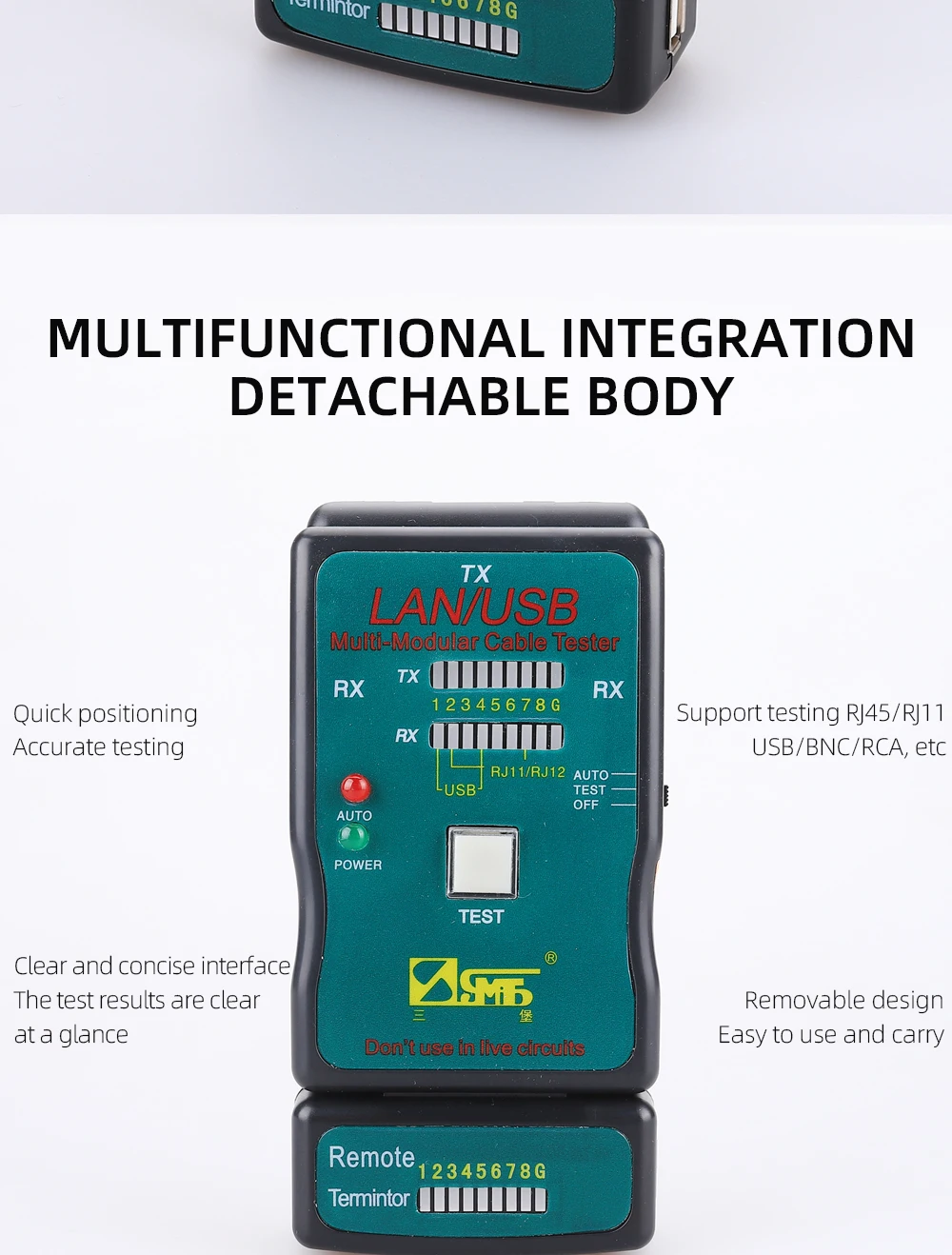 7. Tipo de cable de detección: RJ45/RJ11/BNC/USB y todo tipo de alambre metálico, etc.