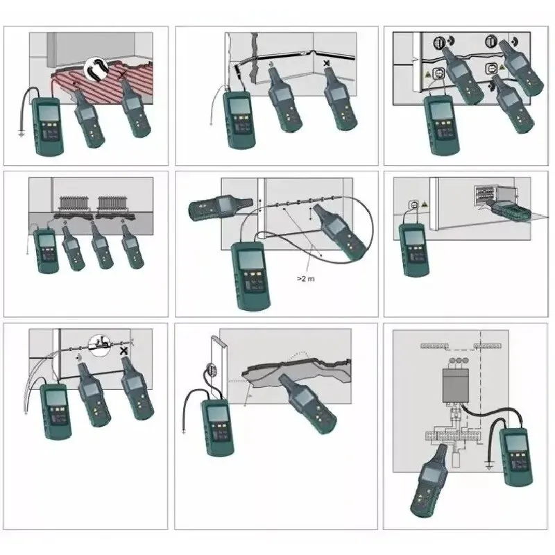 Detección de cables, líneas eléctricas, tuberías de suministro de agua/gas enterradas en paredes o tierra.