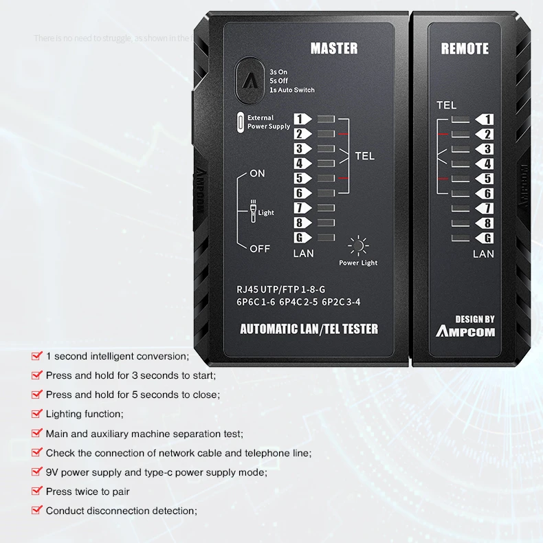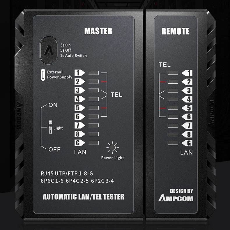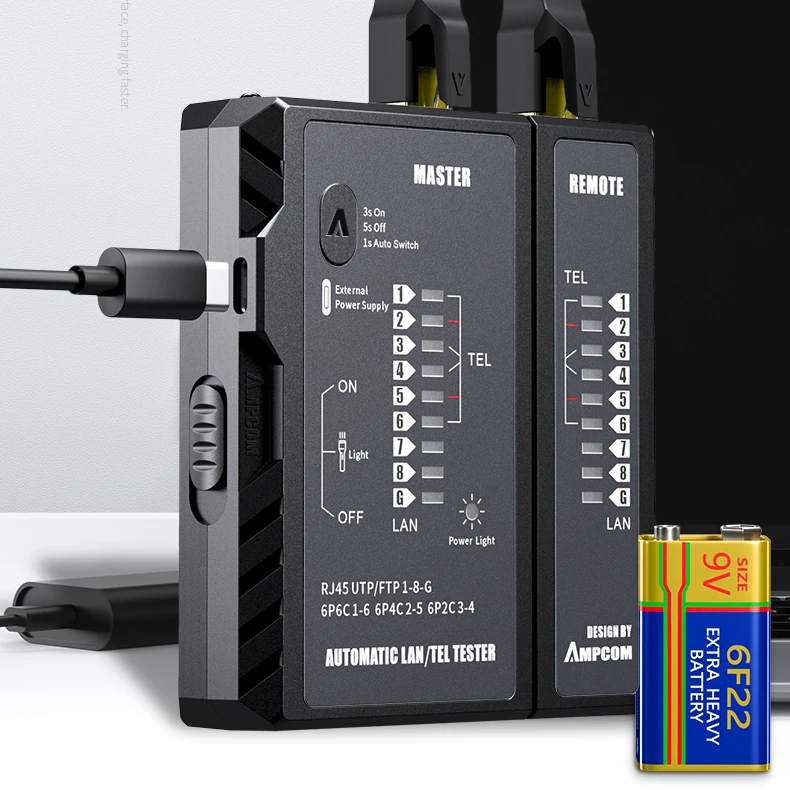 Comprar Probador de cables de red AMPCOM, herramienta de prueba de cables de teléfono LAN, herramienta de red, reparación Ethernet para RJ45/RJ11/RJ12/CAT5/CAT6/CAT7/CAT8