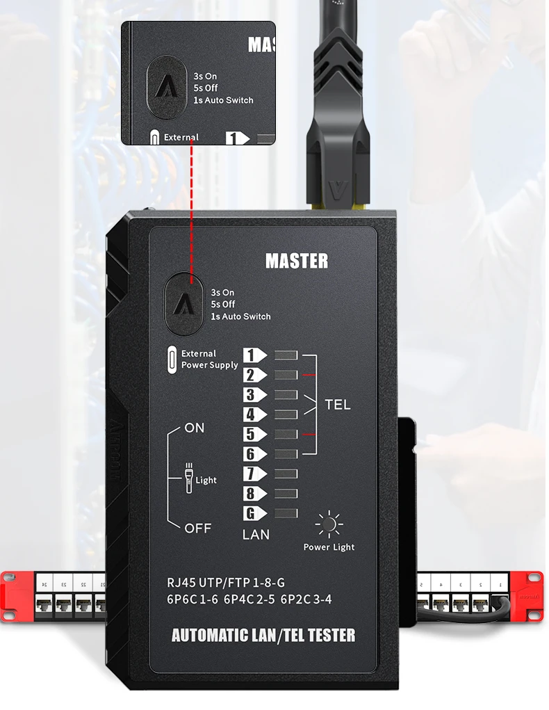 Probador de red 100% nuevo, con luces LED e interfaz de microalimentación