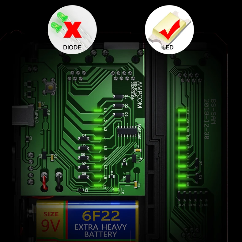 Alimentado por una batería de 9V;Alimentado por el puerto de carga tipo c; Con un cable tipo c en el paquete