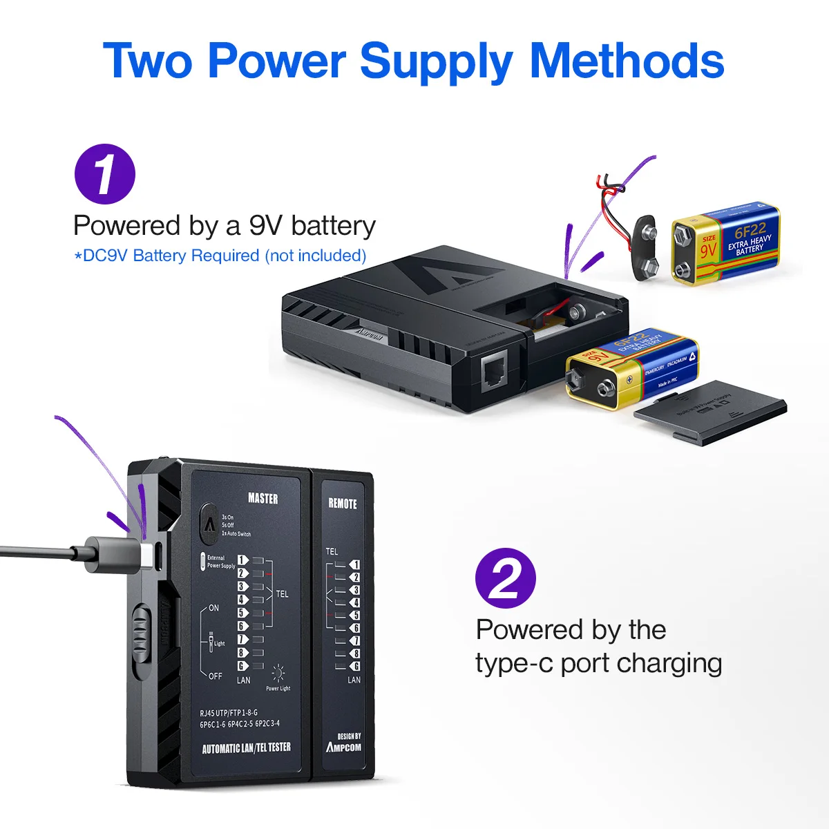 Comprar Probador de cables de red AMPCOM, herramienta de prueba de cables de teléfono LAN, herramienta de red, reparación Ethernet para RJ45/RJ11/RJ12/CAT5/CAT6/CAT7/CAT8