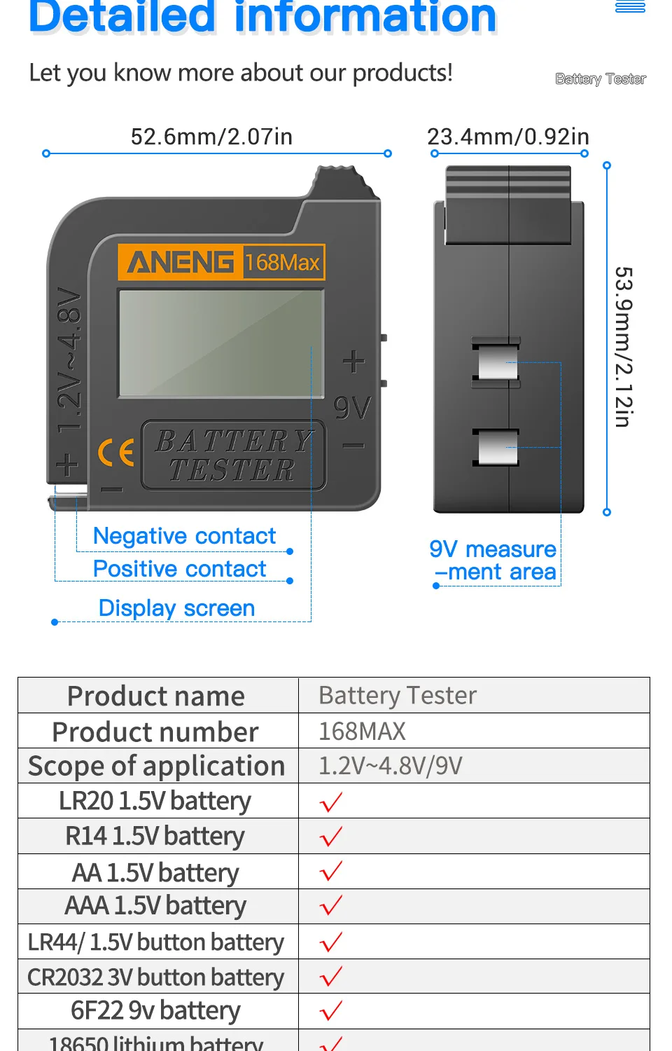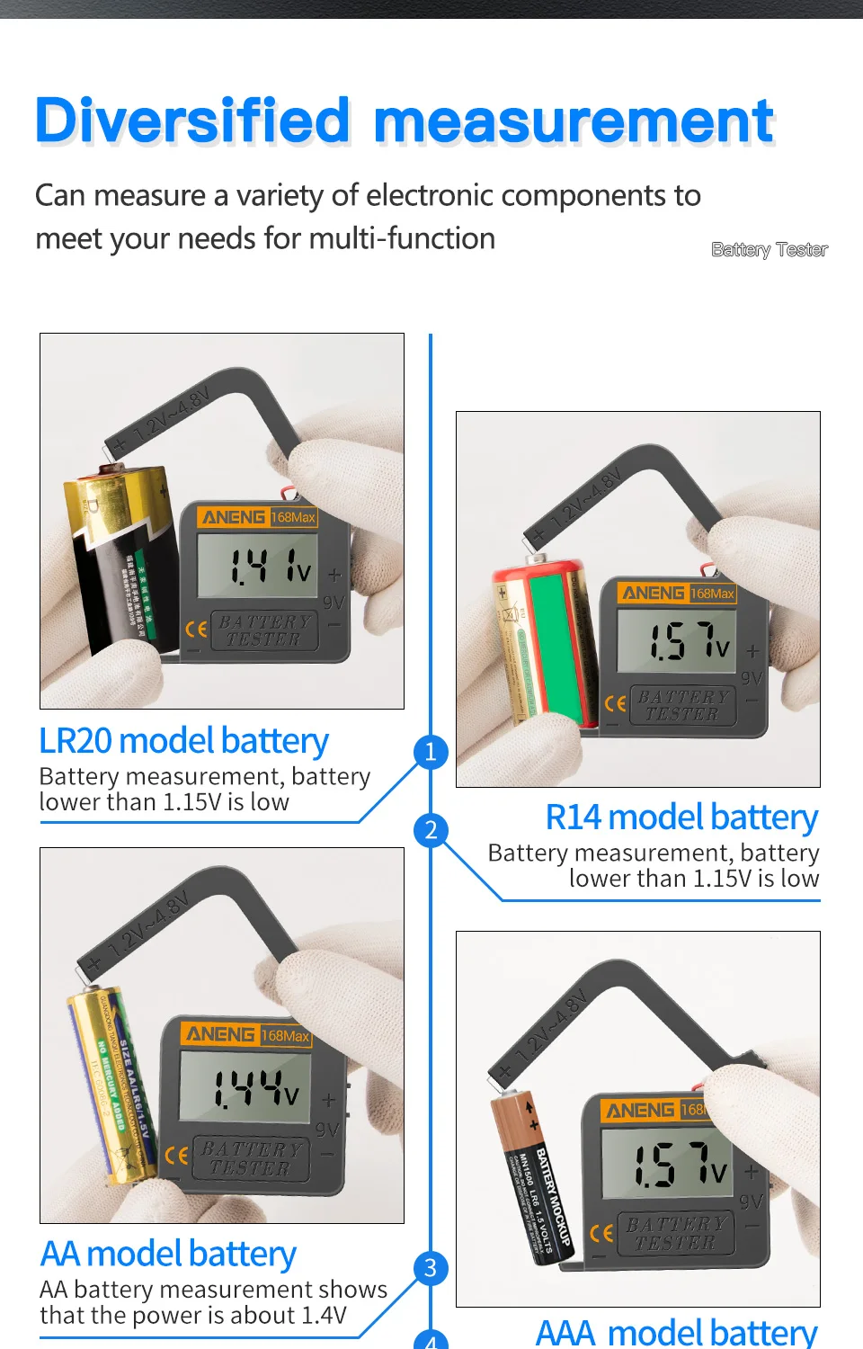 Probador Digital de Batería de Litio, Herramienta de Diagnóstico de Capacidad DE LA Batería, Pantalla LCD, Botón AAA AA, Universal, 168MaxCaracterística
