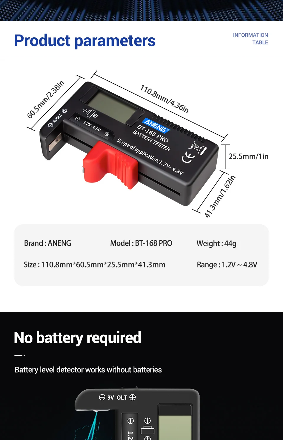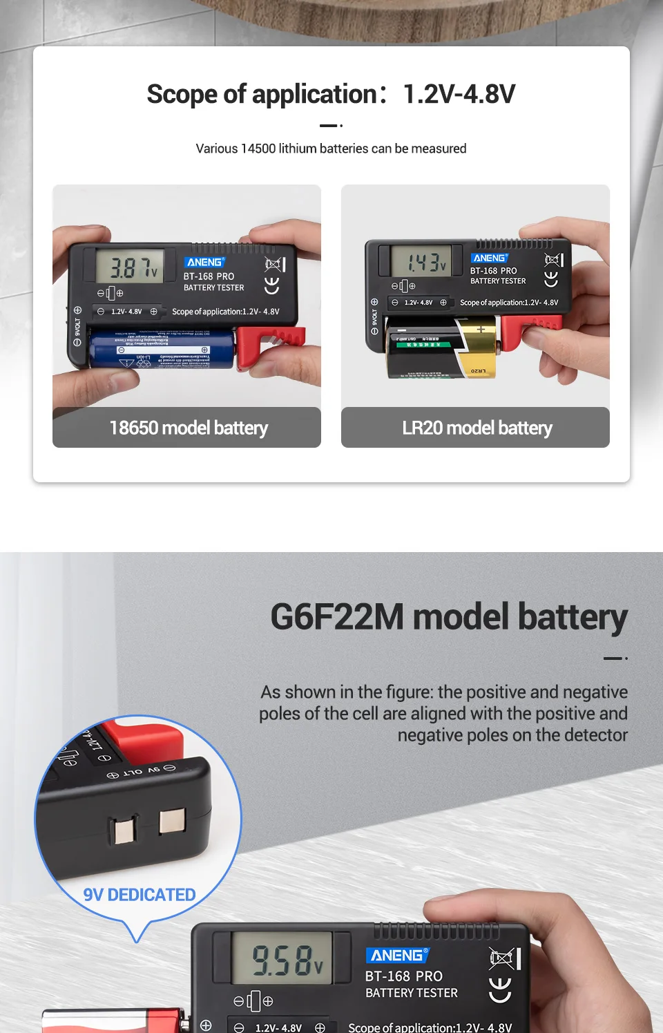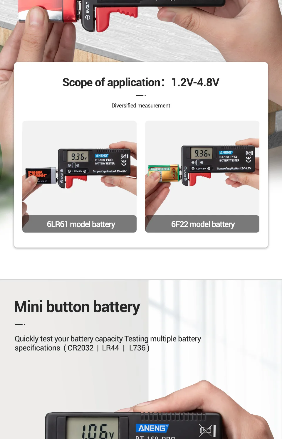 Probador Digital de Batería de Litio, Herramienta de Diagnóstico de Capacidad DE LA Batería, Pantalla LCD, Botón AAA AA, Universal, 168MaxCaracterística
