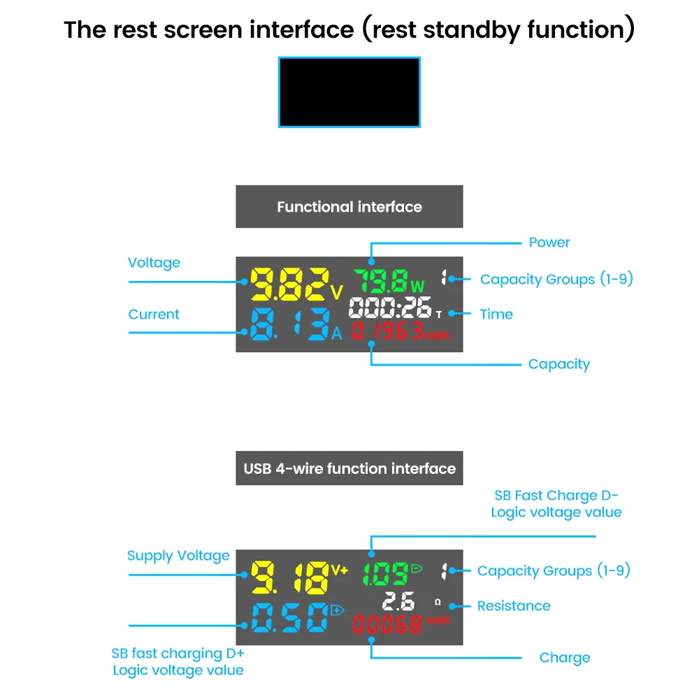 1.Corriente, voltaje, potencia, potencia, capacidad, capacidad, resistencia, tiempo de sincronización, número de grupo de capacidad, Celsius, Fahrenheit, reconocimiento rápido y muchos otros parámetros, una pantalla de una variedad de parámetros.