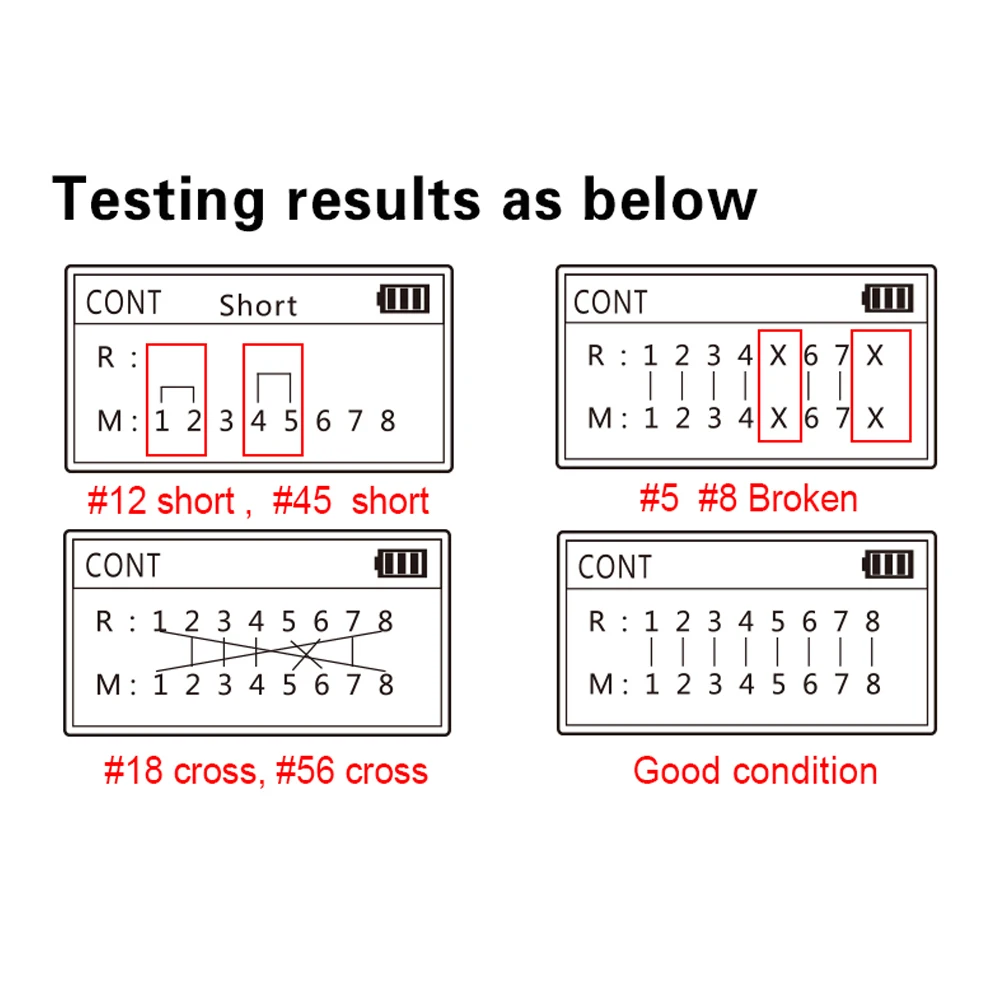 Prueba el estado abierto y corto en el cable de red.