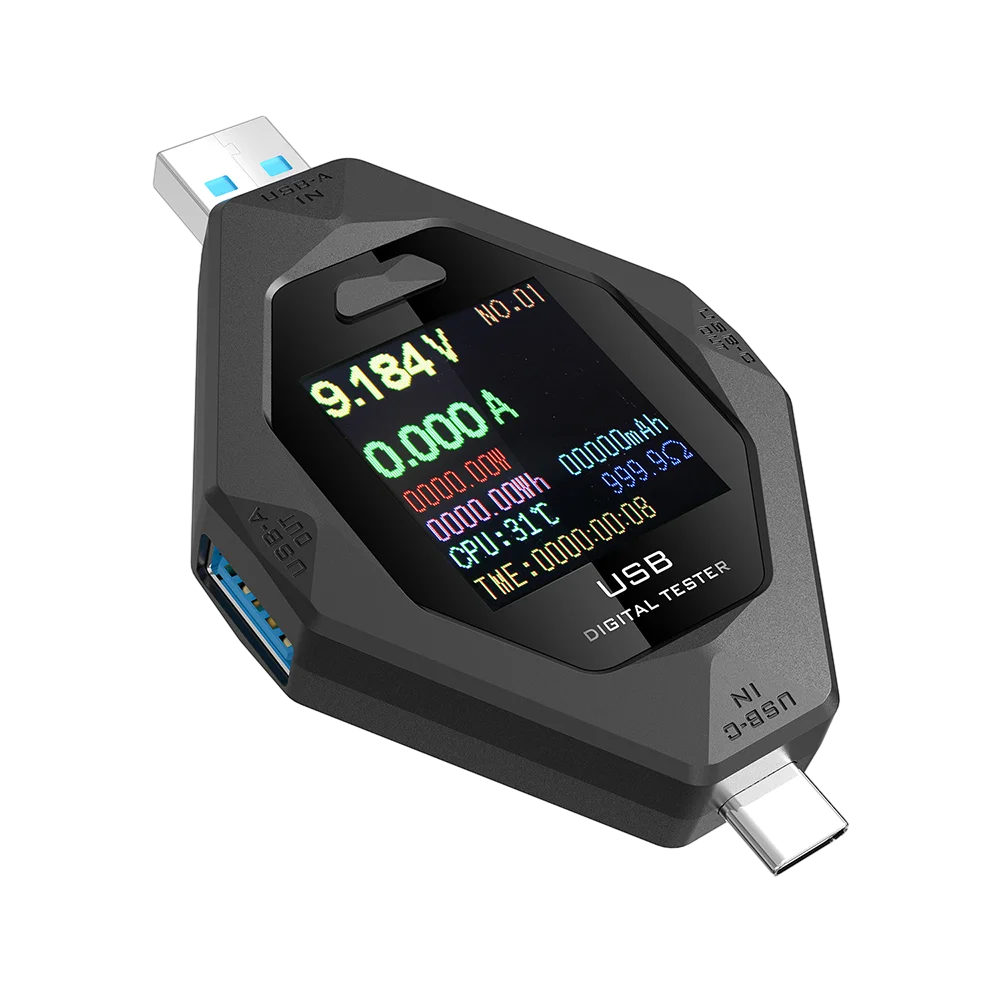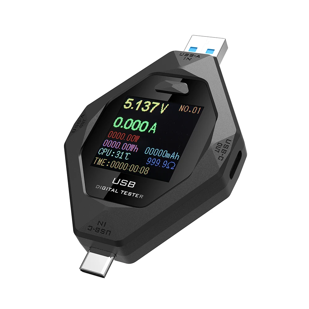 1.Medidor de combustible USB C multifunción mejorado: detecta el estado de carga y el proceso de dispositivos USB o tipo C, y puede mostrar corriente, voltaje, potencia, capacidad, resistencia y otras funciones.