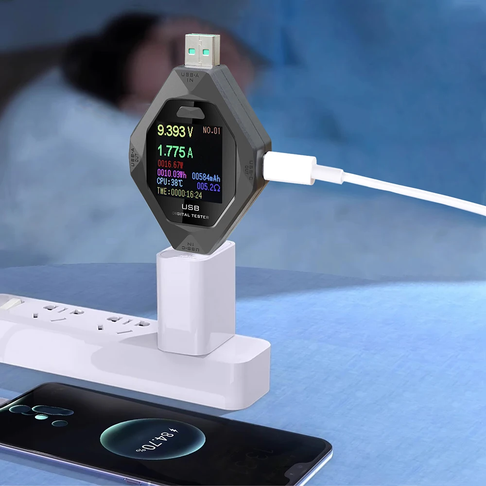 2.Compatible con QC3.0, QC2.0 y BC1.2.Una herramienta esencial para detectar el rendimiento de carga (velocidad y calidad de carga) de cargadores de paneles solares/carros de salida y cables de carga USB.