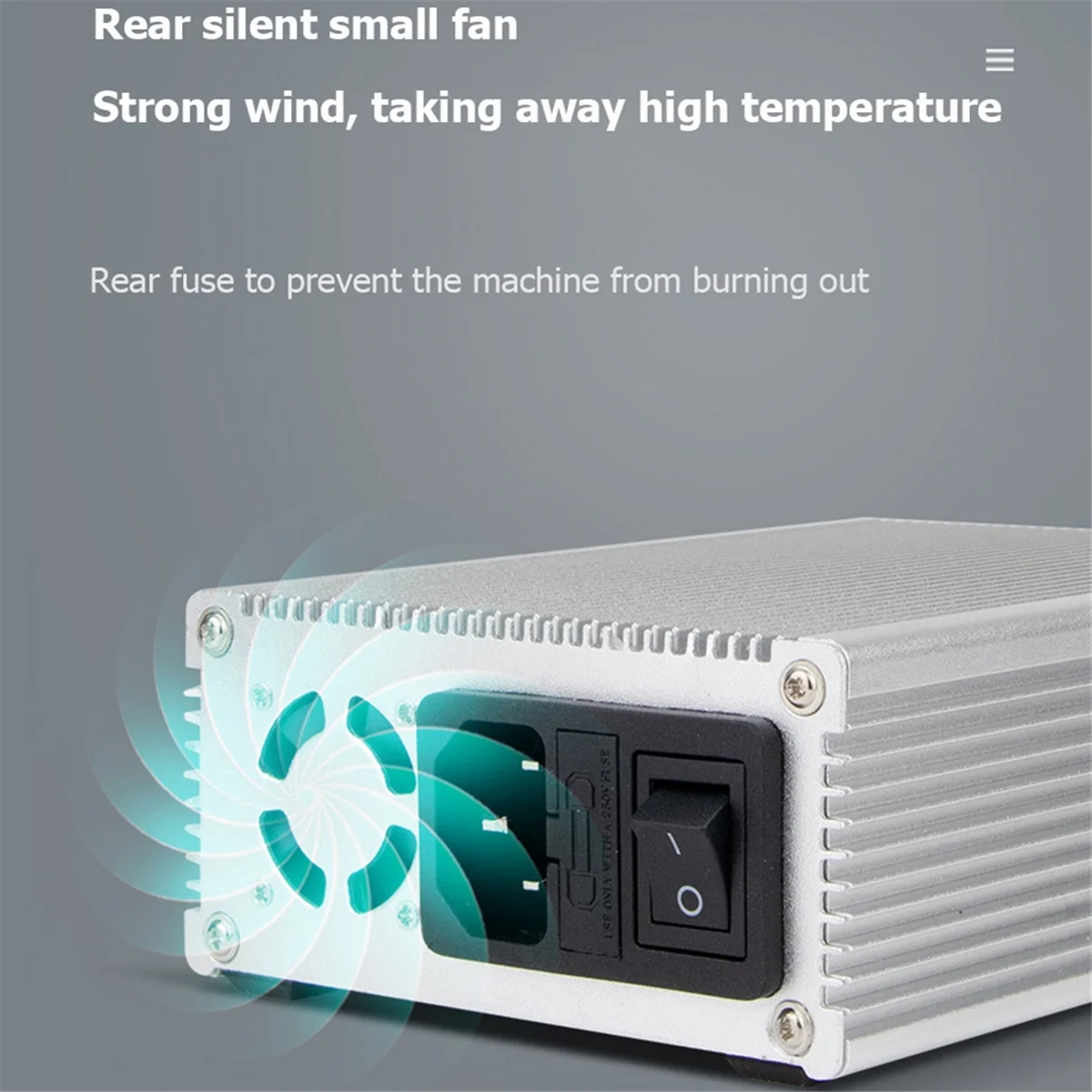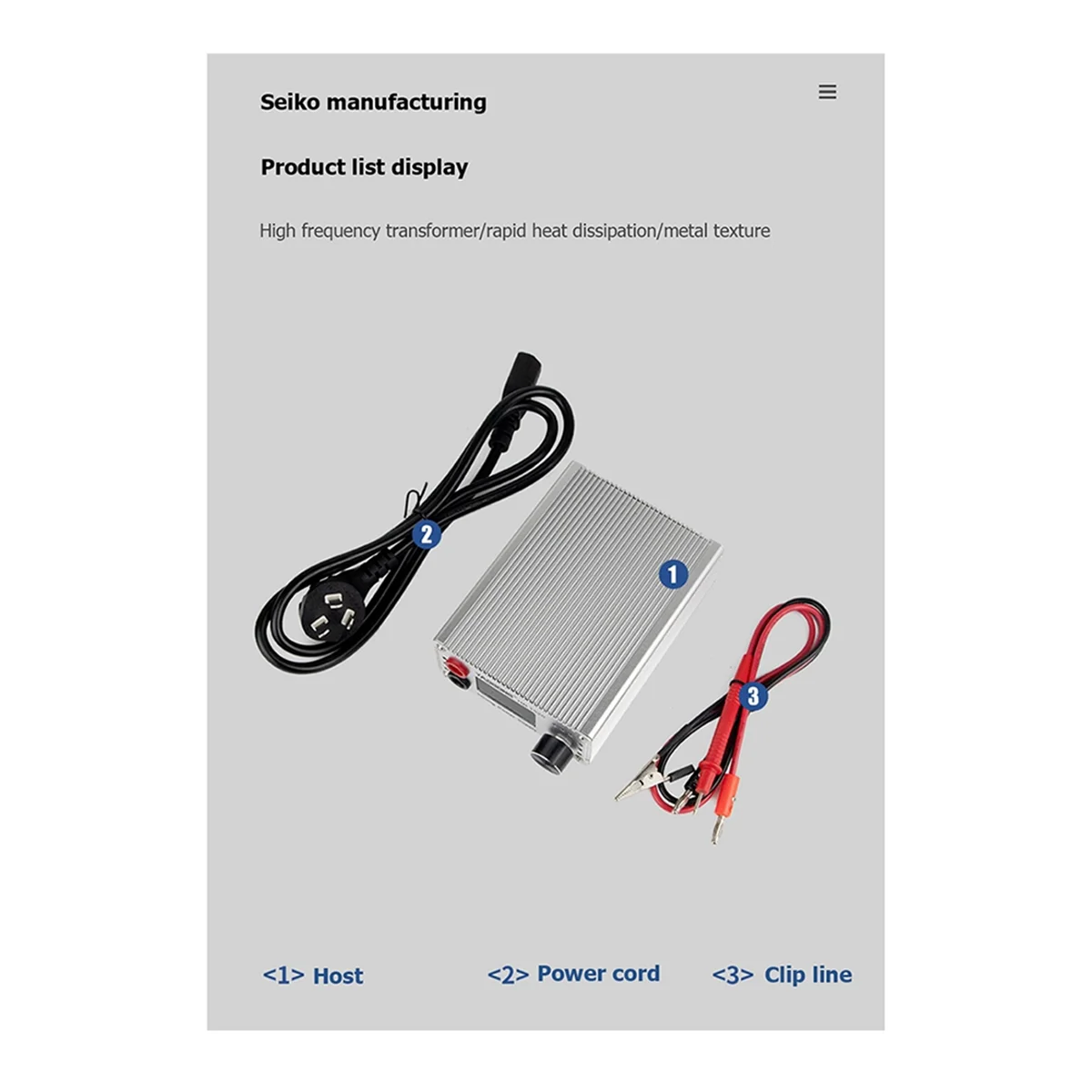 Nueva caja de detección de cortocircuito de PCB para el mantenimiento de la placa base de teléfonos móviles. Puede ayudar a los técnicos a evaluar con precisión y rapidez la interrupción actual de la placa principal. Adecuado para la mayoría de teléfonos móviles y computadoras, se puede detectar fallas de cortocircuito en la placa de circuito de cualquier teléfono móvil y computadora portátil. Pequeño ventilador trasero silencioso, viento fuerte, eliminando altas temperaturas. Fusible trasero para evitar que la máquina se queme. Clip de tigre duradero, medición precisa, alambre de silicona suave. El cortocircuito se puede detectar y reparar en unos segundos. Tipo de enchufe: Enchufe europeo, se aplica a Indonesia, Alemania, Francia, España, Italia, etc. Voltaje: AC220V Tamaño: 10 x 12 x 4,5 cm Material: Metal Color: plata Contenido del paquete: 1 x Host 1 x Cable 1 x enchufe europeo Solo el contenido del paquete anterior, otros productos no están incluidos. Nota: Los reflejos de la luz y las diferentes pantallas pueden hacer que el color del elemento en la imagen sea un poco diferente al real. El error de medición permitido es +/- 1-3 cm.