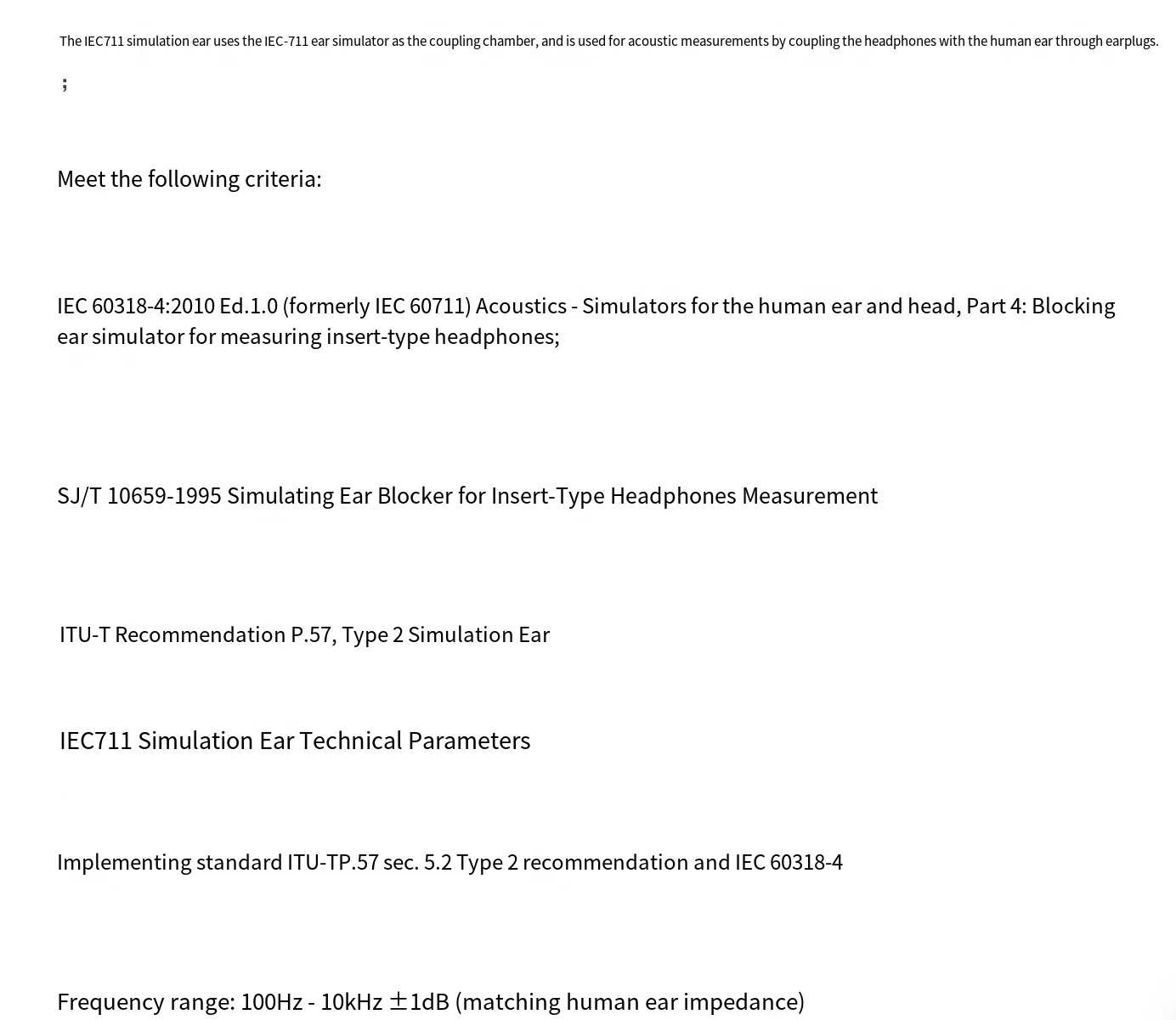 El oído simulado IEC711, con accesorios de acoplamiento relevantes, puede probar auriculares/tapones para los oídos internos/tapones para los oídos de cabeza plana y bobina dinámica/unidades de hierro dinámicas