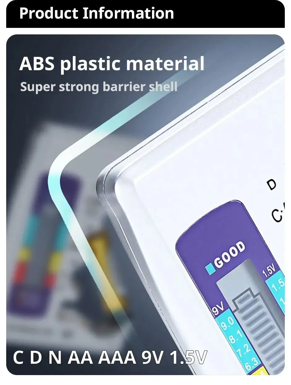 • Fácil de usar: El probador de la batería es fácil de usar y fácil de usar. Simplemente inserte la batería en el probador, y mostrará la capacidad en la pantalla LCD.