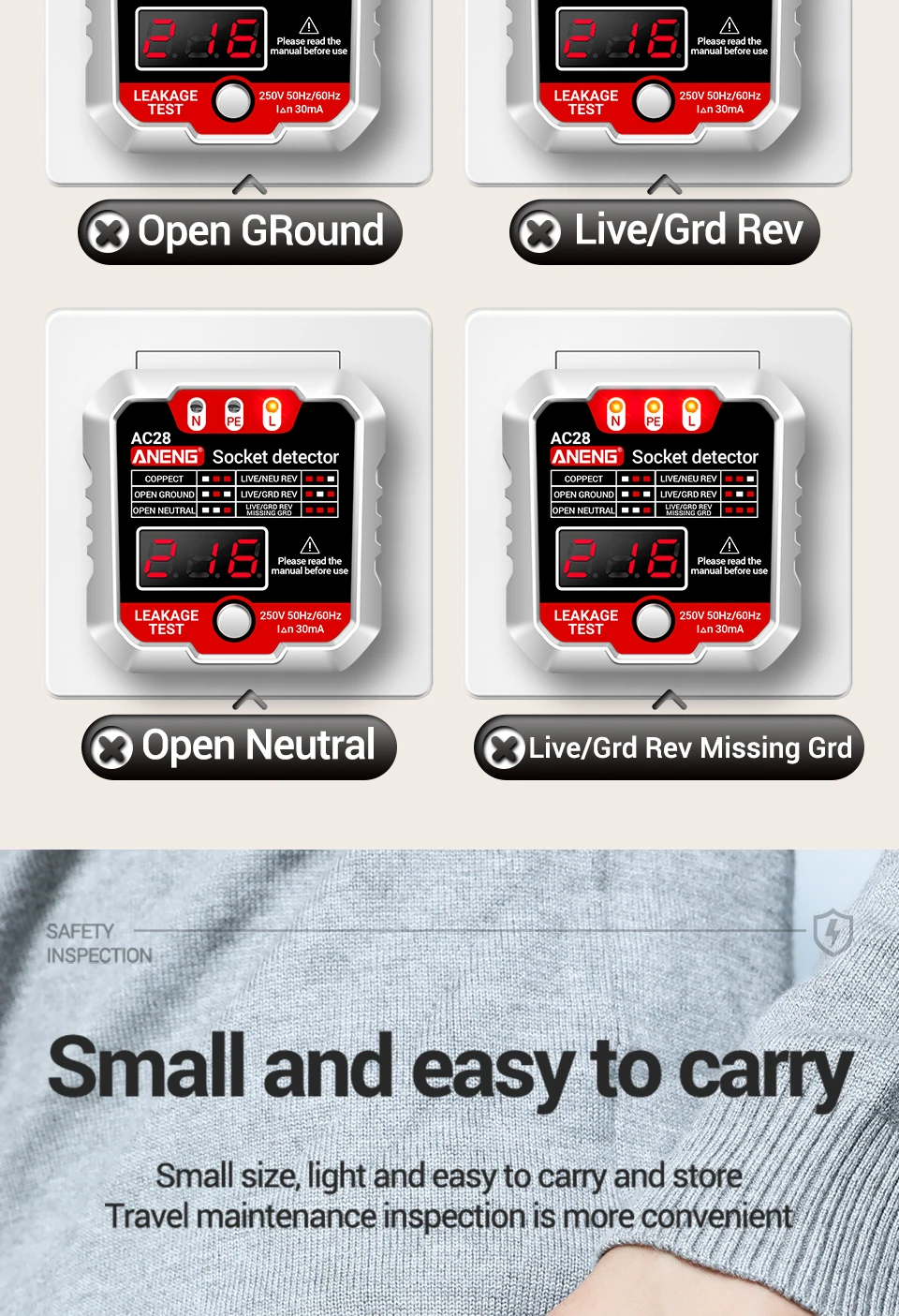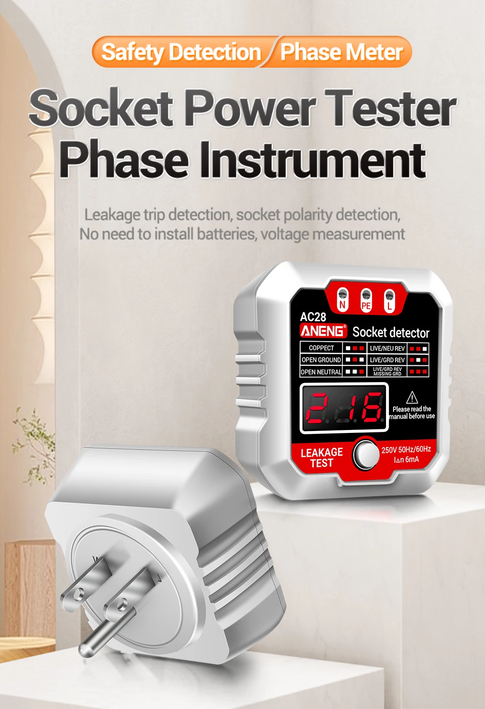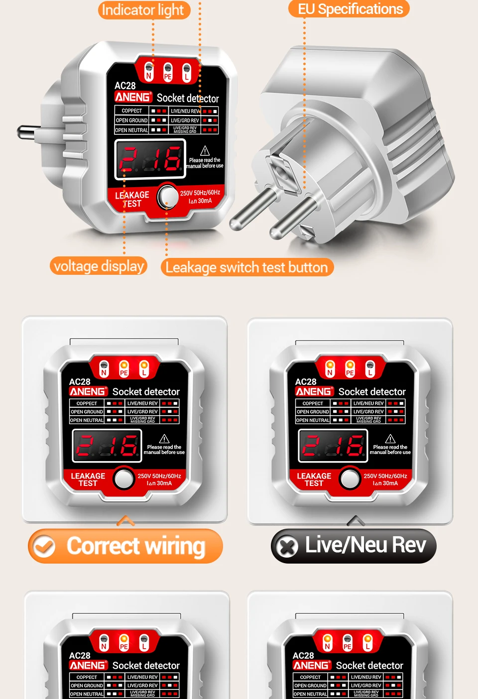 Comprar Probador de enchufe Universal ANENG AC28, probador de batería, Detector, comprobador de potencia, probador de voltaje LCD, herramientas de detección de medidor de fase
