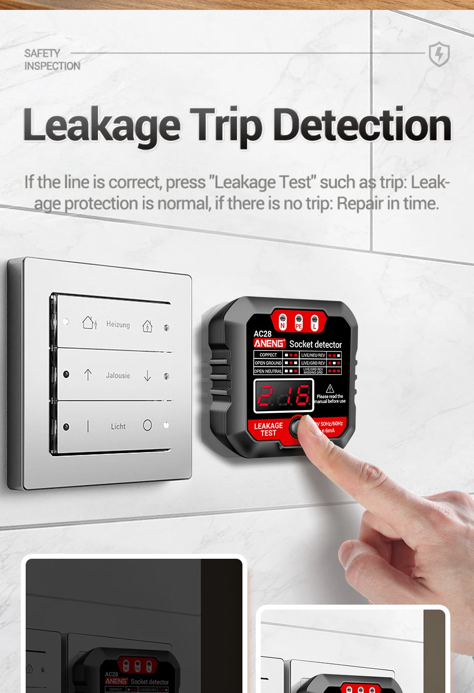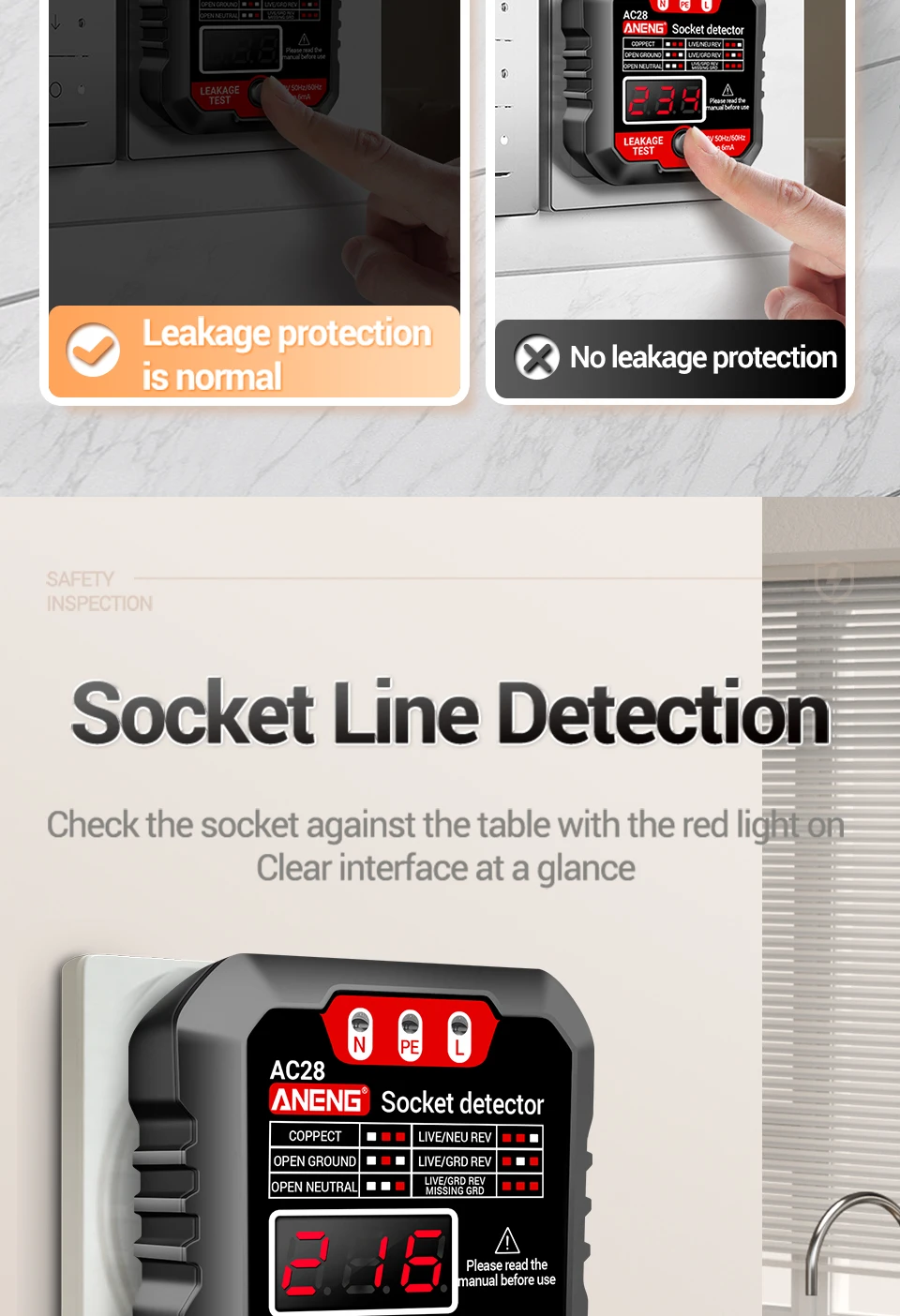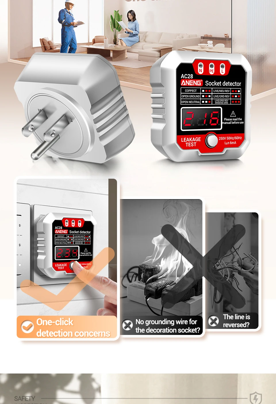 Comprar Probador de enchufe Universal ANENG AC28, probador de batería, Detector, comprobador de potencia, probador de voltaje LCD, herramientas de detección de medidor de fase