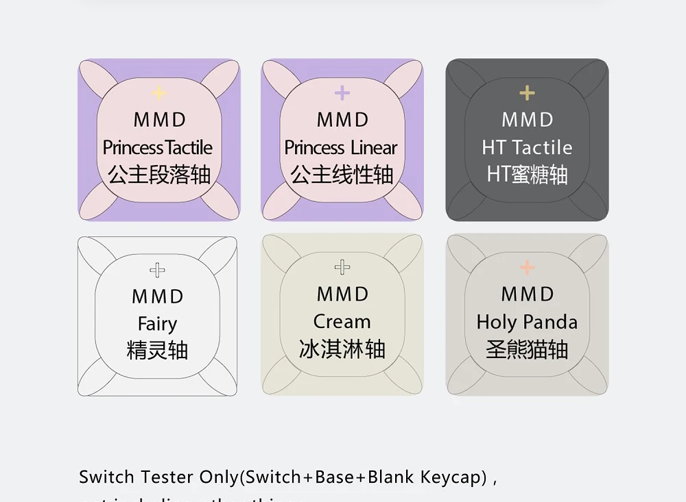 Comprar Probador de interruptor de acrílico MMD para teclado mecánico, interruptor lineal táctil de princesa MMD, HT Fairy Cream, Holy Panda