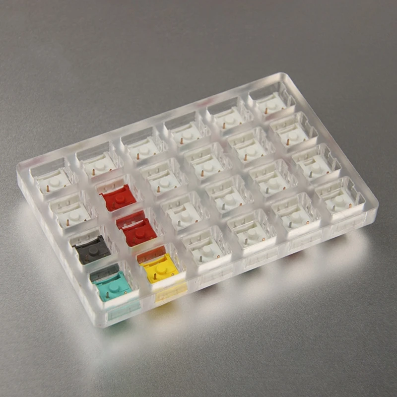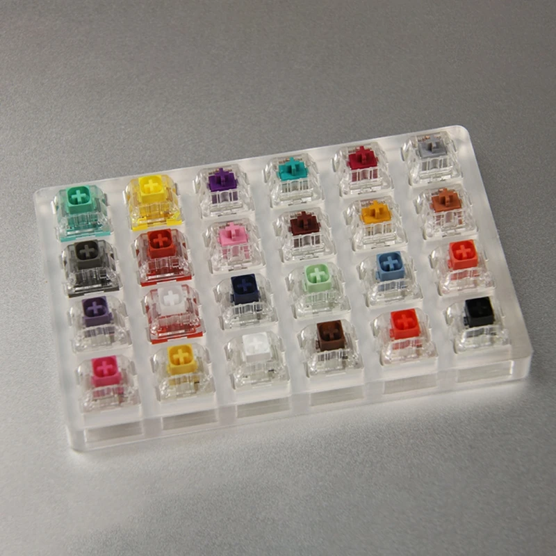 Este probador Cherry MX comparte exactamente la misma sensación de presión en un teclado mecánico Cherry MX. Al igual que tener 24 Teclados mecánicos, 24 interruptores diferentes te ayudarán a saber cuál es tu tipo favorito.