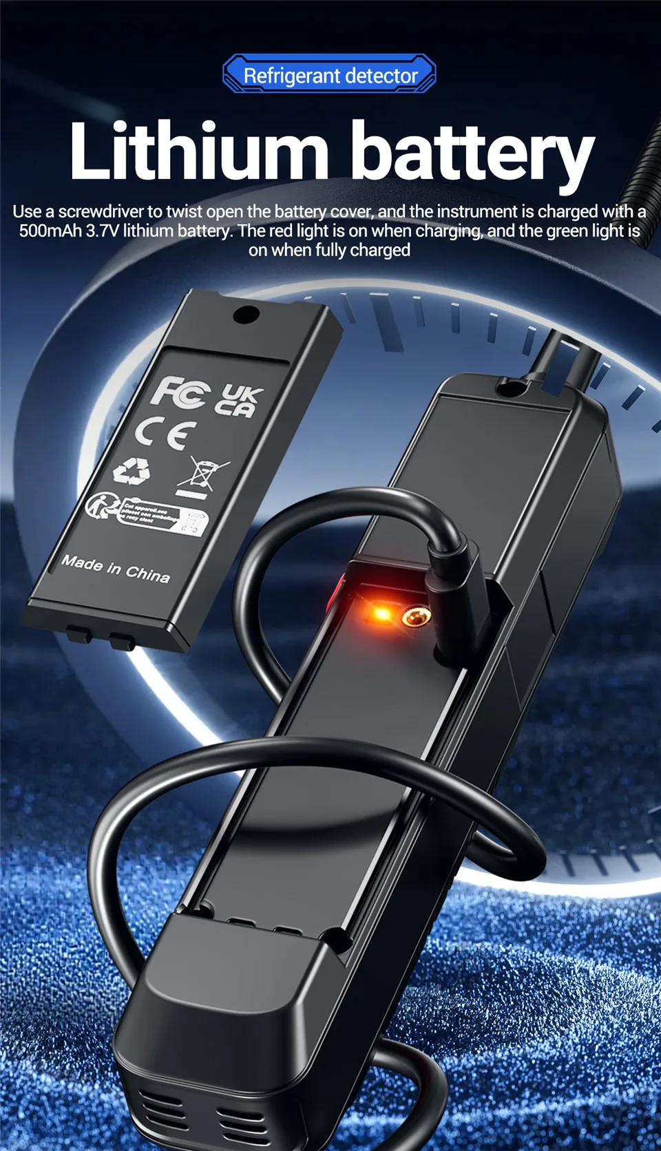 4.Carga rápida tipo C: la batería de litio incorporada de 500 mAh proporciona una inspección continua; sin celdas desechables.