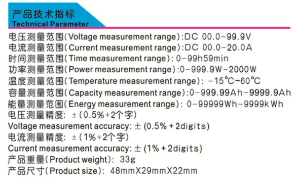 Probador multifunción OLED 33V 100V voltaje corriente tiempo temperatura capacidad voltímetro amperímetro medidor eléctrico pantalla blanca