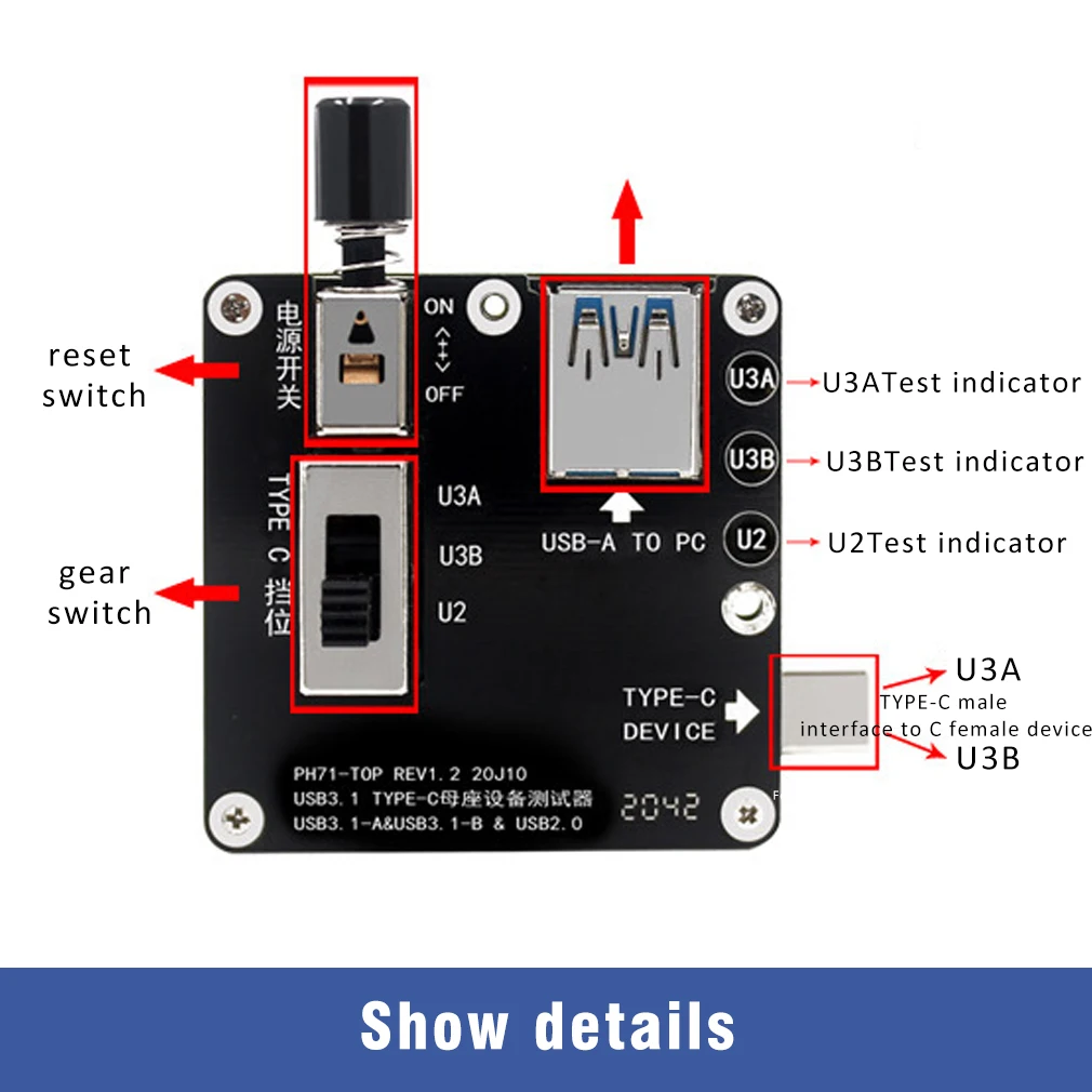 Comprar Probador de separación de canales tipo C U2U3, divisor de disco duro móvil, lector de tarjetas de disco U, dispositivos de USB-C, conmutadores, equipos, tarjeta de prueba