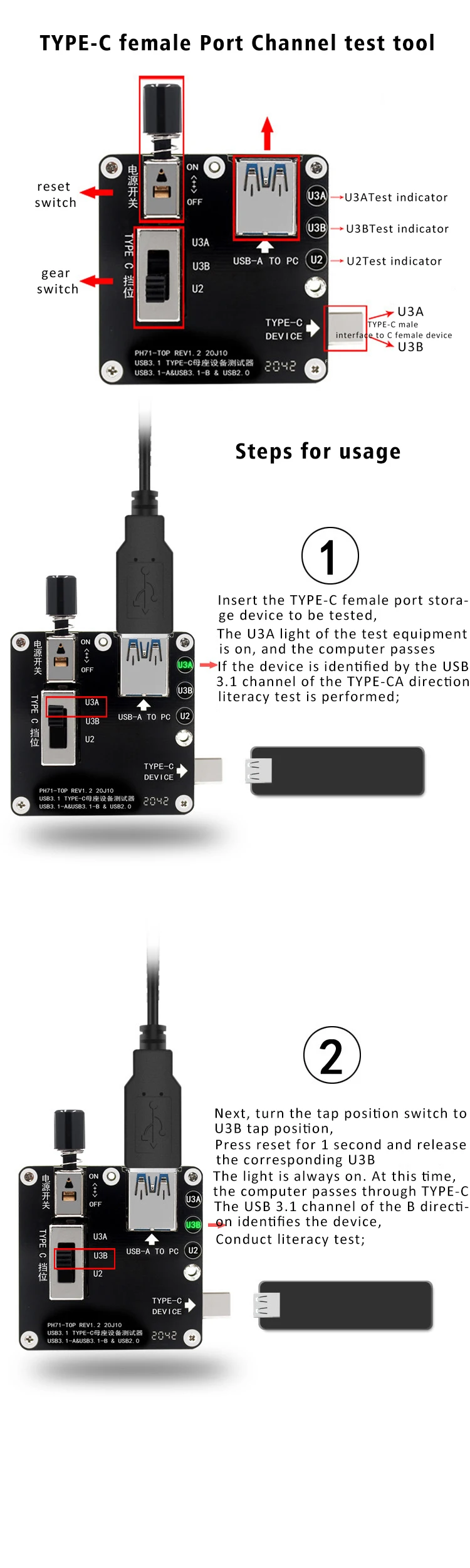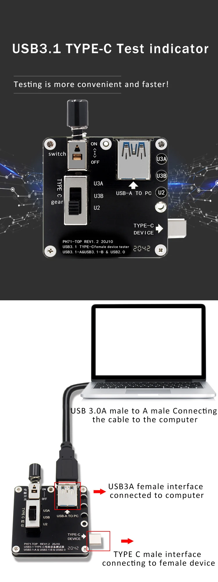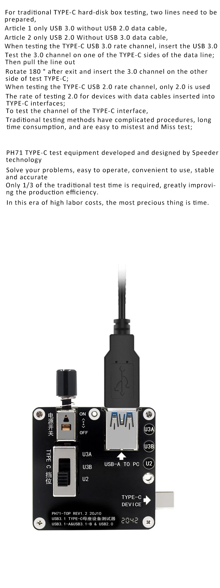 Probador de separación de canales tipo C U2U3, divisor de disco duro móvil, lector de tarjetas de disco U, dispositivos de USB-C, conmutadores, equipos, tarjeta de prueba