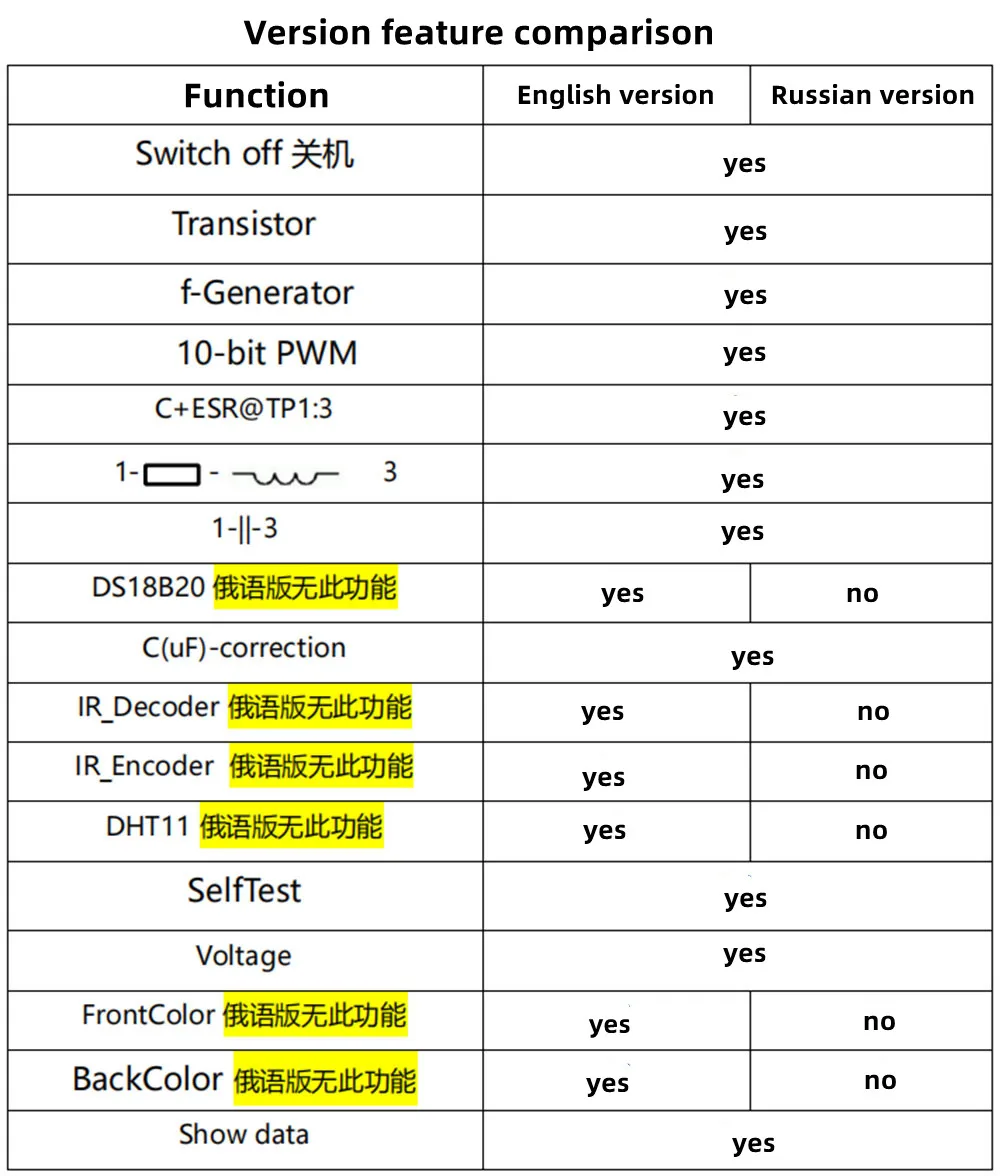Detecta automáticamente transistores NPN y PNP, FET, diodos, diodo dual, tiristor, SCR, identificación automática del pinout del transistor.