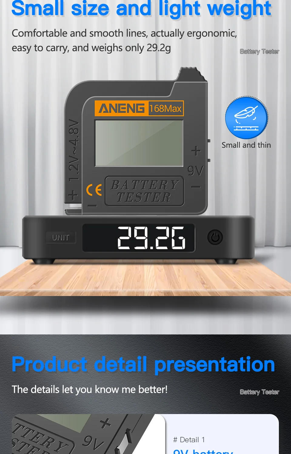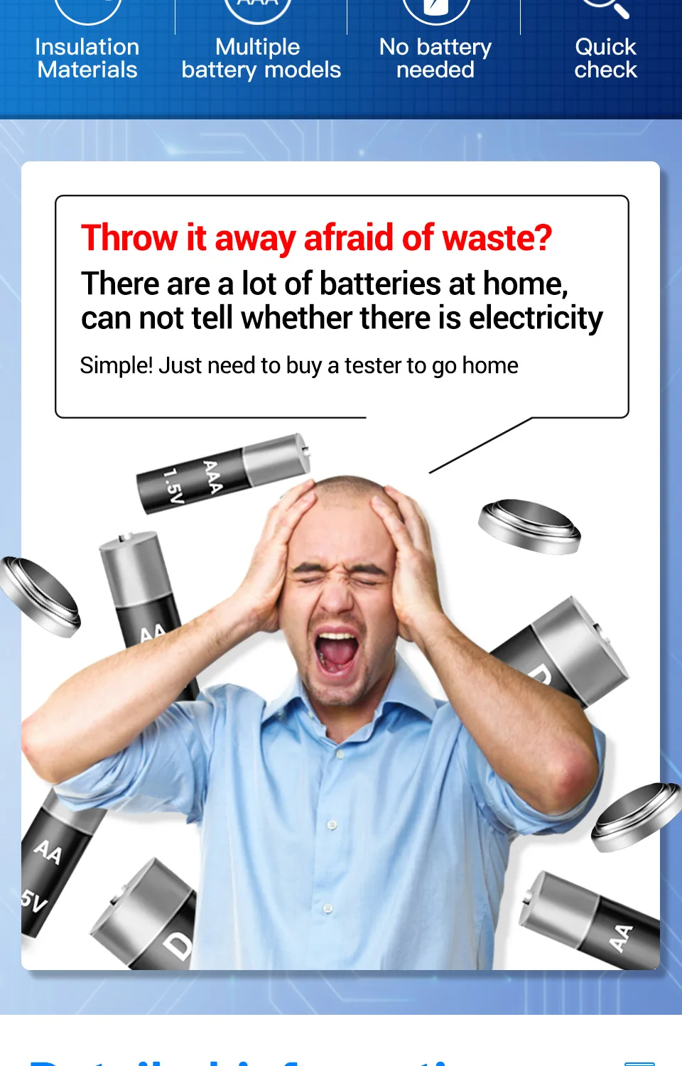 7.Probador de verificación de pilas de botón universal AA AAA C D 9V