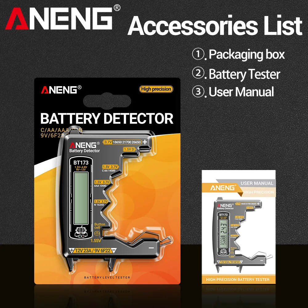 Comprar Probadores de voltaje de batería ANENG BT173 barras de baterías de iones de litio/detector de pantalla Dual de valor 18650 21700 12V 23A herramientas electrónicas