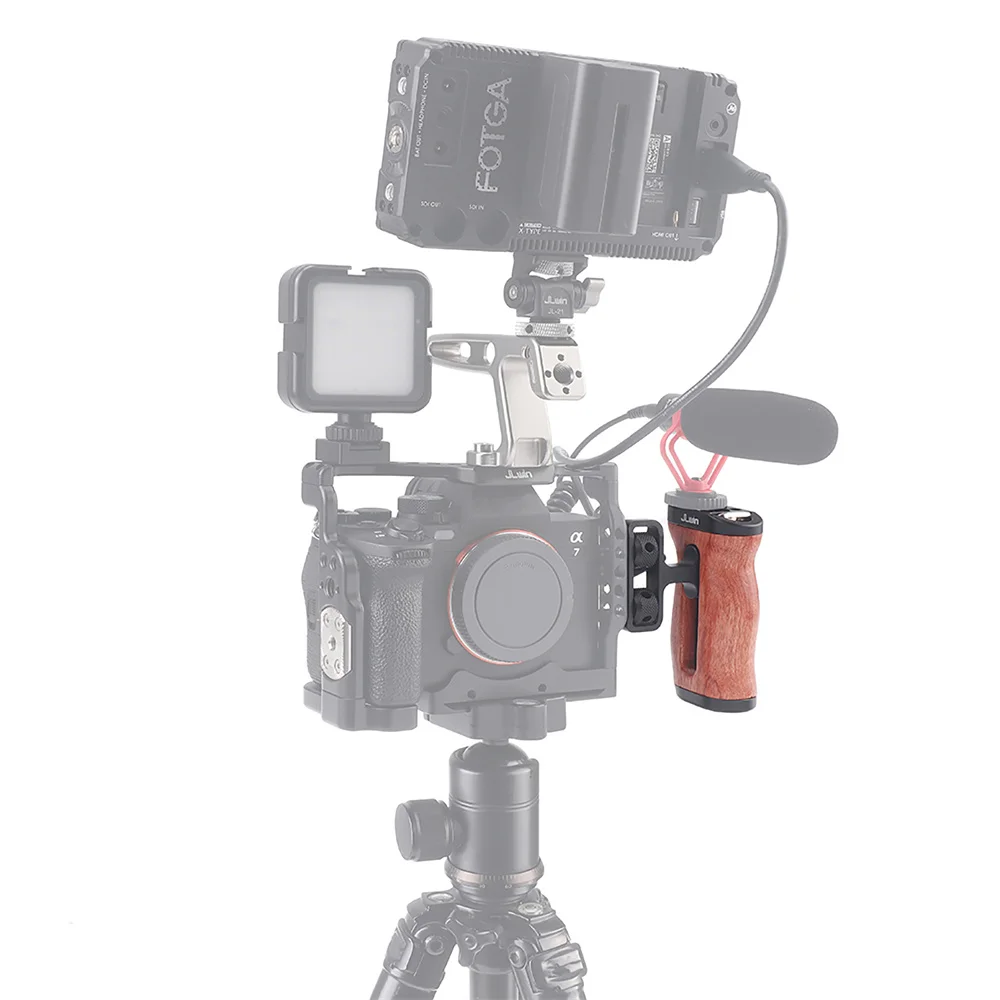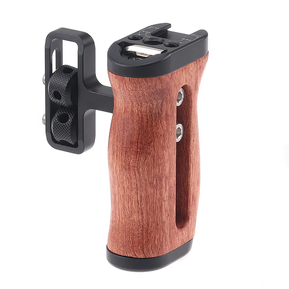 El mini mango lateral de madera (1/4''-20 tornillos) está diseñado para cámaras digitales sin espejo y otras cámaras pequeñas.Se fijan dos tornillos de 1/4''-20 al costado de la jaula.El mango admite opciones de montaje adicionales: el flash y el micrófono se pueden montar a través de la zapata fría, y la correa para la muñeca se puede montar a través del ojal para evitar que la cámara se caiga accidentalmente.Altamente ajustable para adaptarse a diferentes alturas de jaula y admitir el interruptor rápido desde zurdos a diestros a través de la llave incorporada.Compatible con jaulas, etc.Hecho de aleación de aluminio y palisandro con diseño ergonómico, el mango portátil brinda a los cineastas una experiencia de disparo suave y cómoda.