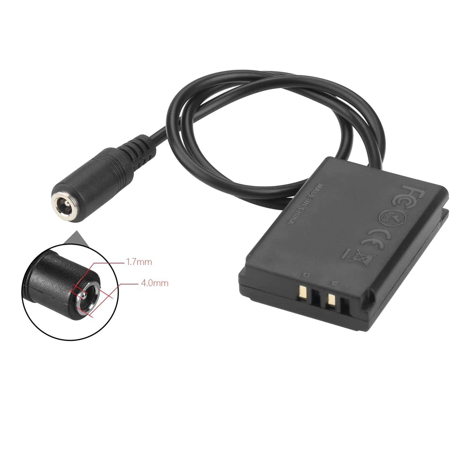 Descripción del producto:1.Modos de fuente de alimentación: le permiten usar su banco de energía, cargador de pared USB u otra fuente de alimentación USB para cargar.NOTA: Asegúrese de que la salida sea de 5 V 2 A o más.2.Fuente de alimentación de larga duración para fotografías en interiores o exteriores.3.Protección de seguridad múltiple: sistema de protección incorporado para protegerlo de sobrecorriente, sobretensión y cortocircuito.Kit de acoplador de CC DR-110 del conector de fuente de alimentación USB de la batería simulada NB-13L:El acoplador CC DR-110 puede reemplazar la batería NB-13LEntrada de cable USB: 5V 2A-3ASalida del cable USB: 4,2 V ± 0,2 VEficiencia de conversión: 92% (tasa de conversión eficiente DC-DC)Tamaño de la interfaz: DC4.0*1.7mmDR-110 CC Longitud del cable: 40 cmLongitud del cable USB: 140 cmEntrada del adaptador de corriente USB: CA 100 V-240 V 50-60 HzSalida del adaptador de corriente USB: 5V 3A/9V 2A/12V 1,5ACompatible con:Para Canon PowerShot G5 X, G5XPara Canon PowerShot G7 X, G7XPara Canon PowerShot G7 X Mark II, G7X MIIPara Canon PowerShot G9 X, G9XPara Canon PowerShot SX620 HS, SX620,Para Canon PowerShot SX720 HS, SX720y más cámaras.El paquete incluye:1 cable de unidad USB.1 acoplador CC DR-110