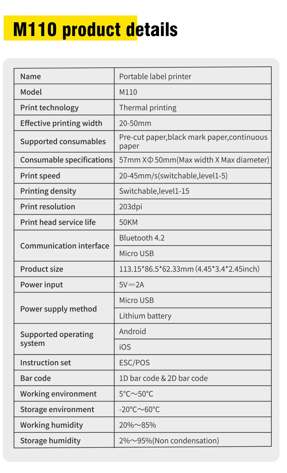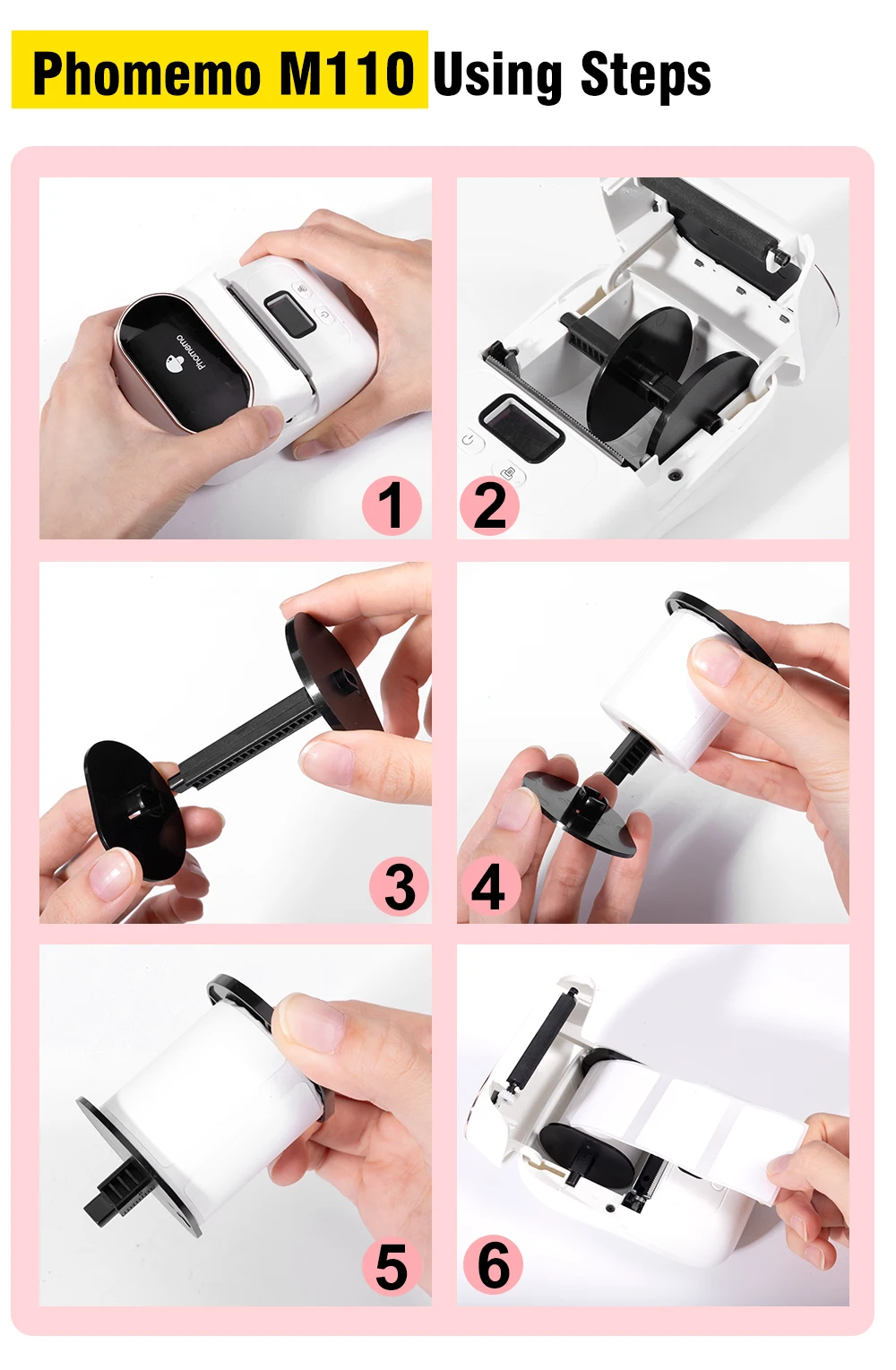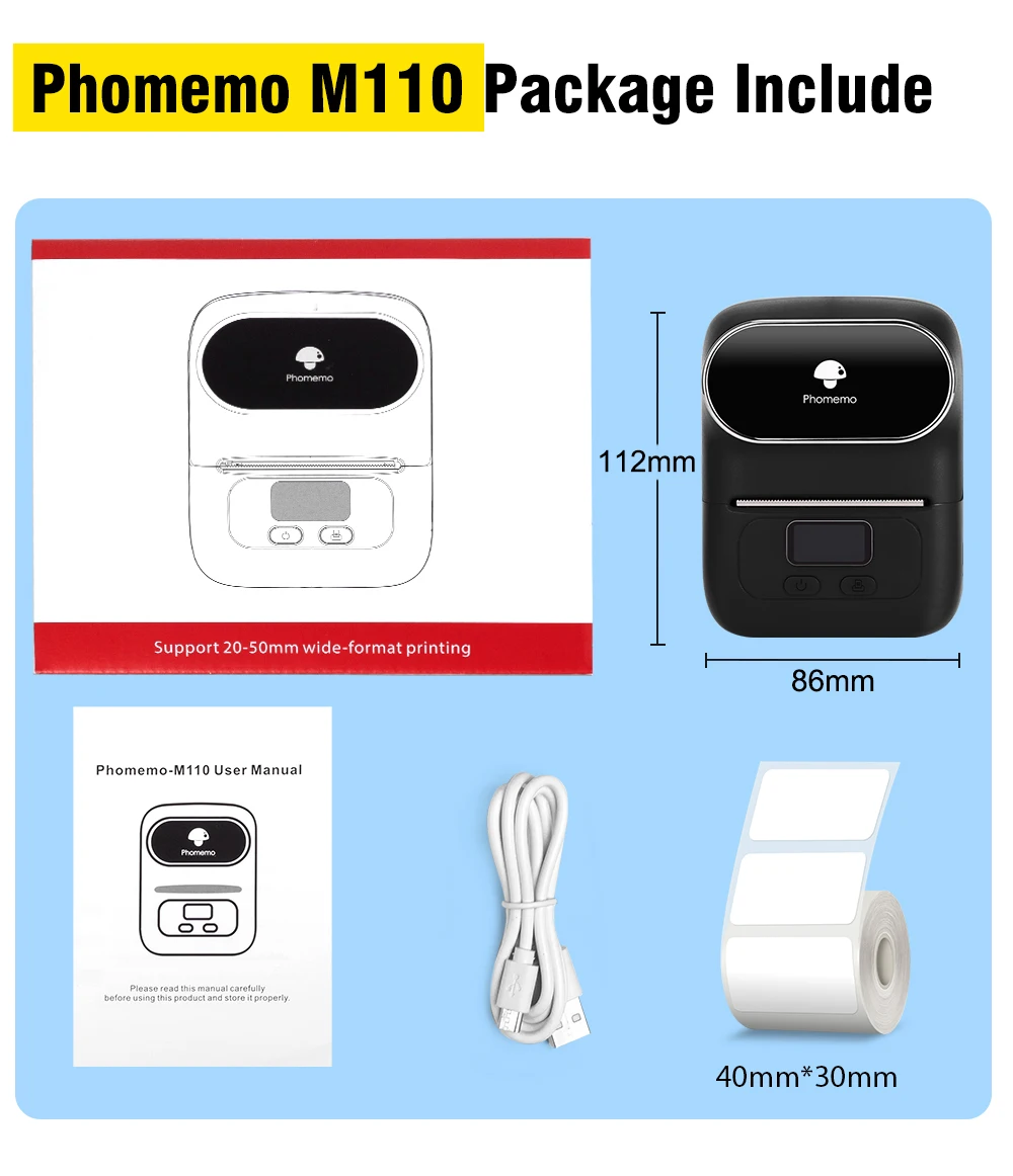 Phomemo M110 Impresora térmica de etiquetas Mini portátil Compatible con Bluetooth Fabricante de etiquetas térmicas Impresora Phomemo para negocios y oficinas