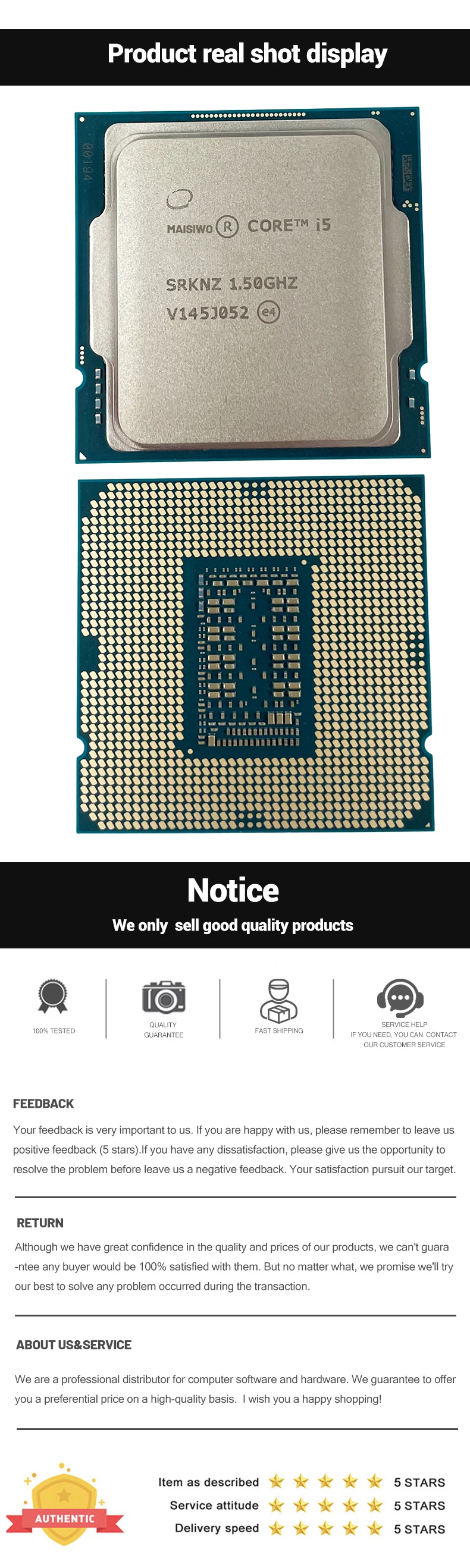 1. Se utiliza la CPU. Algunos de ellos pueden tener arañazos o abolladuras en la superficie. Se probará finalmente antes del envío para garantizar el rendimiento, haga su pedido sin preocupaciones.