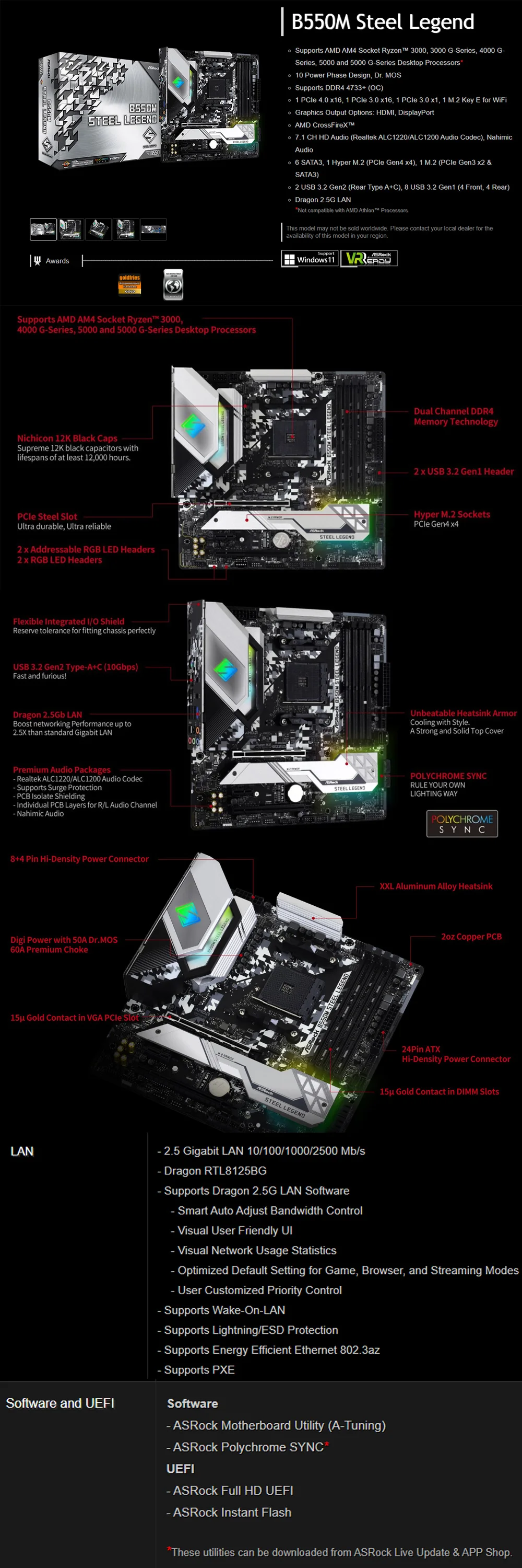 Comprar PROCESADOR AMD R5 3500X Combo ASRock B550M STEEL LEGEND DDR4 Socket AM5 USB PCI-E 4,0 M.2 SATA 128GB Micro placa base ATX, nuevo